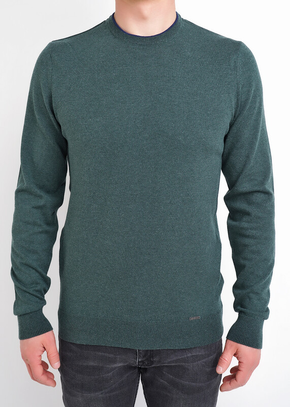 Мужской вязаный джемпер с круглым вырезом горловины в базовом ассортименте. Модель завершенная благодаря двойной контрастной горловине, декоративной полосатой тесьме и провязаной обтачке по спинке. Модель дополняет металлофурнитура по низу.