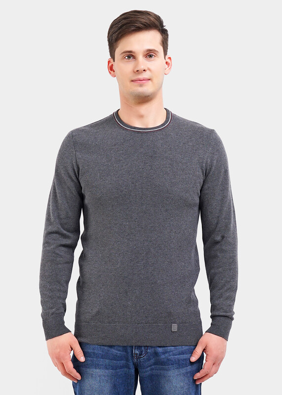 Джемпер прямого силуэта с круглым вырезом горловины. По бейке горловины полосы контрастного цвета. По спинке стильная обтачка контрастного цвета из поплина . Изделие выполнено из натуральной пряжи. Хорошо смотрится с джинсами или брюками.