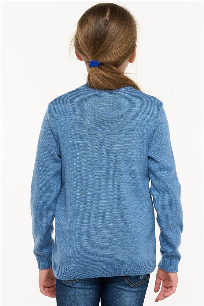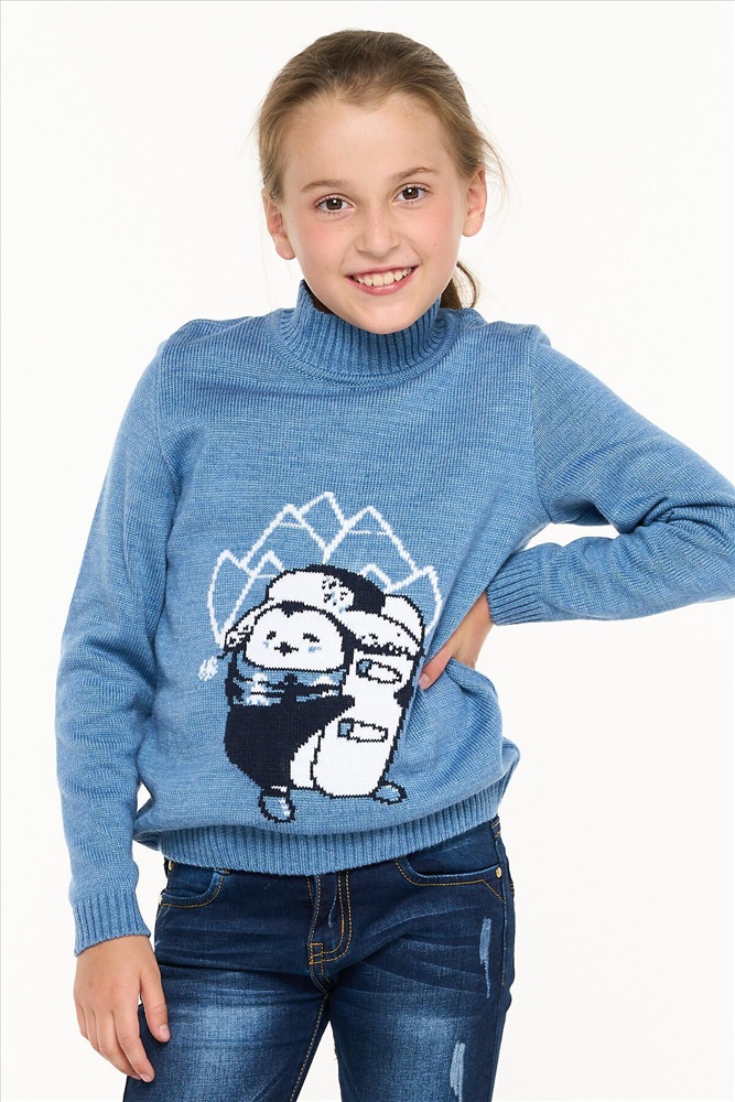 Детский джемпер с воротником-стойкой, на полочке рисунок.