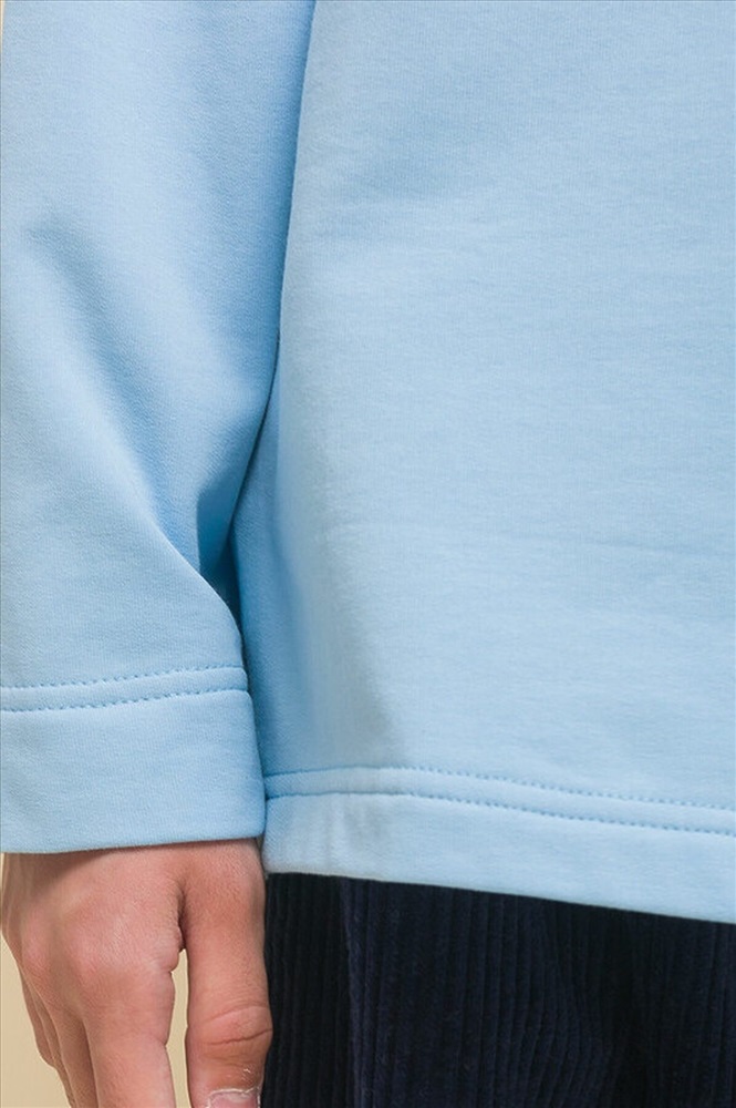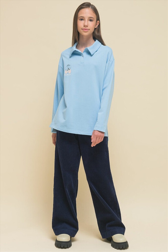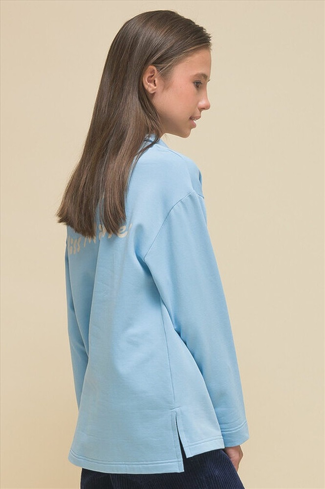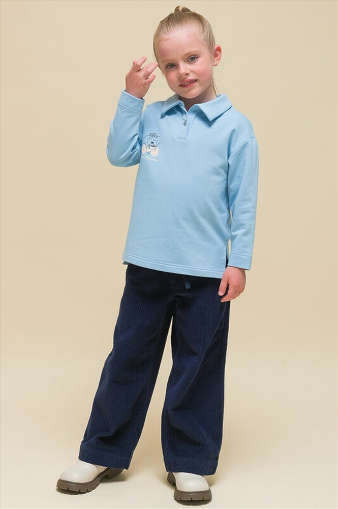Джемпер детский для девочки. Изделие умеренного объёма со спущенным плечом подарит ребёнку комфорт и свободу движений. Джемпер с воротником отложным в актуальном стиле поло, планка застёгивается на пуговицу. Спинка немного длиннее переда, по бокам разрезы — актуальные, стильные детали. Джемпер неприхотлив в уходе. В составе ткани (футер с начёсом) преобладает высококачественный хлопок — толстовка мягкая и великолепно пропускает воздух — кожа ребёнка дышит. Благодаря эластану изделие сохраняет прекрасную форму в течение длительного времени. Свитшот с принтом по переду и спинке. Милый принт с уютным настроением изображает собачку в бигуди и с чашкой кофе, надписи переводятся: «время для счастья», «пропустить минутку». Принты эластичные и стойкие — легко переносят многочисленные стирки. Джемпер выполнен в нежном голубом цвете, его просто комбинировать с любыми брюками, легинсами, джинсами. Размерная линейка: 2 (92): 3 (98): 4 (104): 5 (110): 6 (116): 7 (122): 8 (128): 9 (134): 10 (140): 11 (146). Свитшот с начёсом подходит девочкам дошкольного возраста, младшим школьницам и девочкам-подросткам. Его можно носить в детский сад, на прогулки, во время отдыха, а также дома. Такие джемперы идеальны для круглогодичного применения: летом, осенью, зимой, весной и демисезон. Это красивый и практичный подарок дочери, внучке или сестре на Новый год и любой другой праздник.