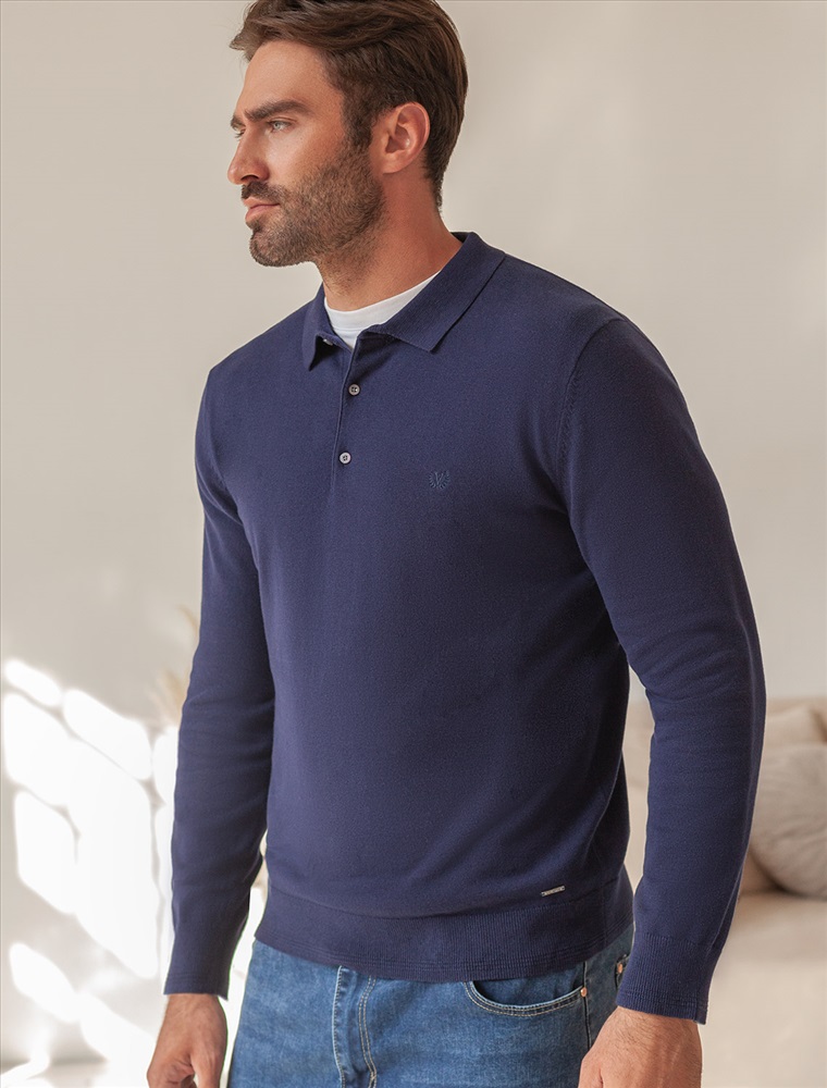 Состав: 82%Хлопок 18%ПА; Плотность: 12 GG Джемпер-поло выполнен из хлопковой пряжи с добавлением нейлона. Модель гладкой вязки дополнена вышитым логотипом бренда и классическим металлическим лого. Фурнитура темный никель. Изделие гармонично впишется в образ как с брюками, так и с джинсами. Хлопковая пряжа хорошо сохраняет тепло при этом, не перегревая тело. Нейлон в составе способствует формоустойчивости.