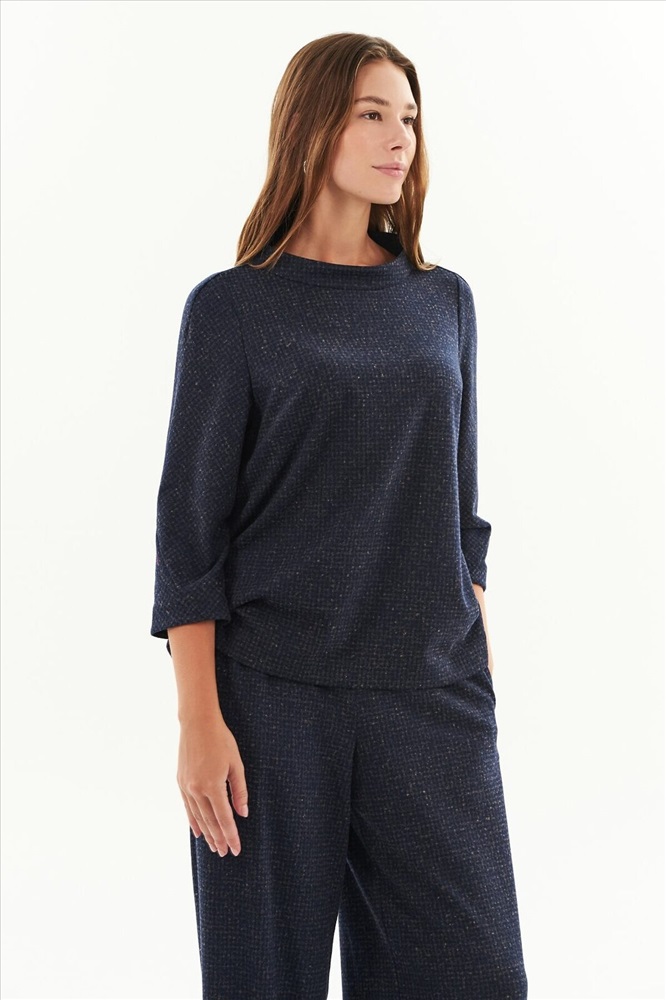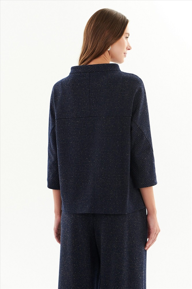 ID товара: 1090609 Состав: Полиэстер 55%, Хлопок 25%, Вискоза 15%, Эластан 5% Сезон: Демисезон Длина: Средняя Фасон: Прямой Рукав: 3/4 Основная ткань: Полиэстер Стиль: Повседневный Страна бренда: Россия Страна производства: Россия Трикотажная блуза прямого силуэта, воротник - мягкая стойка, по спинке фигурный рез, переходящий на рукав. В комплект к блузе предлагаем широкие брюки из той же ткани. Комментарии к товару