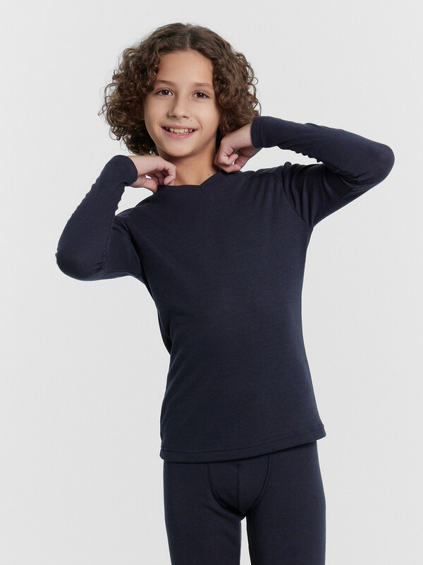 Классический прилегающий джемпер для мальчиков. Умный материал фактуры "термо" удерживает тепло и отводит избыточную влагу. Особый способ вязания полотна, предуcматривающий воздушные ячейки, соединяющие основу полотна с верхним слоем, придаёт изделию особые гигиенические и термические свойства. Австрийская технология производства ткани позволяет выдерживать экстремальные температуры до -20 градусов Цельсия. Изделия из такой ткани могут использоваться ежедневно, для занятий спортом, охотой, рыбалкой и активного отдыха.