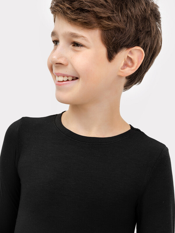 Джемпер из особого трикотажного полотна. Силуэт прилегающий, длина до линии бедер, рукава длинные, горловина округлая. В состав полотна, созданного по японской технологии, входит микроакрил, который благодаря своей толщине (меньше волоса человека в 10 раз), создает своеобразные воздушные карманы между нитями – именно за счет этого свойства кальсоны так хорошо согревают. Благодаря эффекту натуральной шерсти выдерживает температуры до -30 градусов Цельсия. Лучше для зимы не придумать!