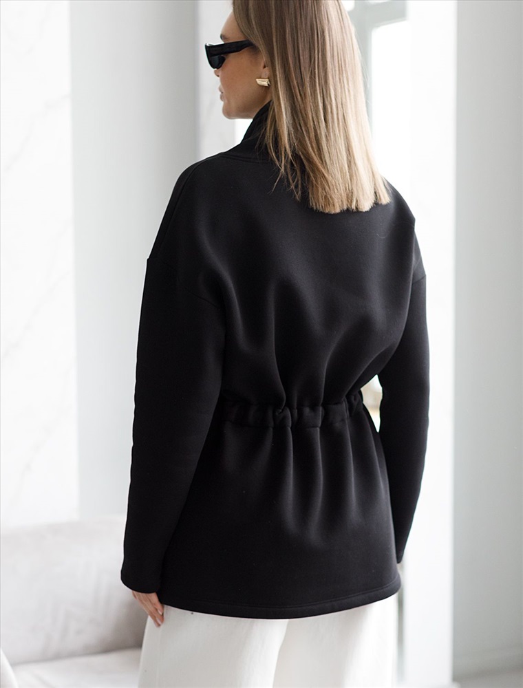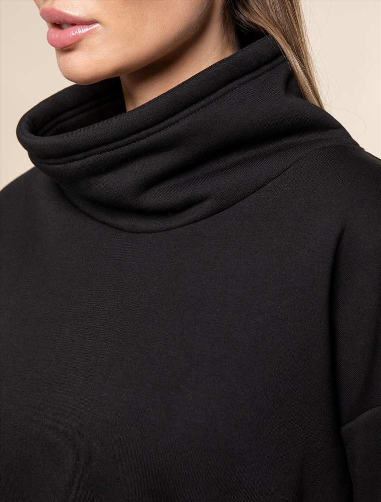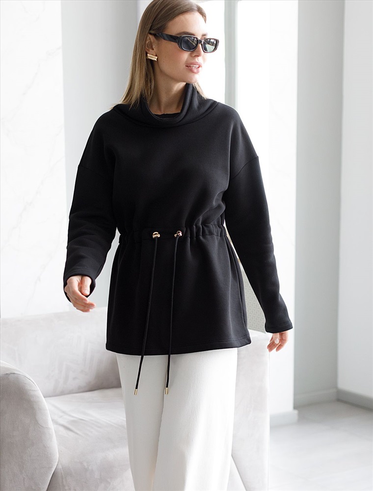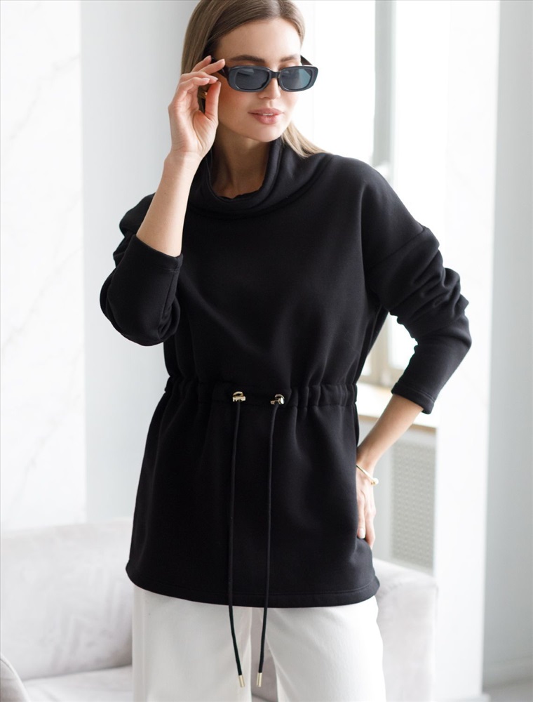 Джемпер с объемным воротом и шнуром на талии из футера-трехнитки