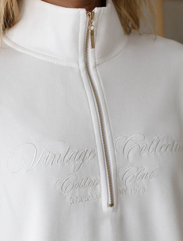 Уютный и комфортный вариант для прохладной погоды – стильный джемпер черного цвета с воротом на молнии. Изготовлен из премиального футера трехнитки с добавлением эластана. Материал сохраняет форму при длительном ношении и после многократных стирок, его мягкая текстура дарит ощущение уюта и тепла. Минималистичная вышивка в тон изделия в виде надписи. еревод надписи: Vinlage collection cotton club - Винтажная коллекция Хлопковый клуб. Свободный крой джемпера позволяет не ограничивать движения, что особенно важно для активного образа жизни. Подойдет на любую женскую фигуру, представлена широкая размерная линейка, большие размеры, легко комбинируется с другими вещами, создавая модные образы в стиле спорт-шик. Этот повседневный джемпер сочетает в себе удобство и актуальность, будет универсальным выбором для отдыха или прогулок.