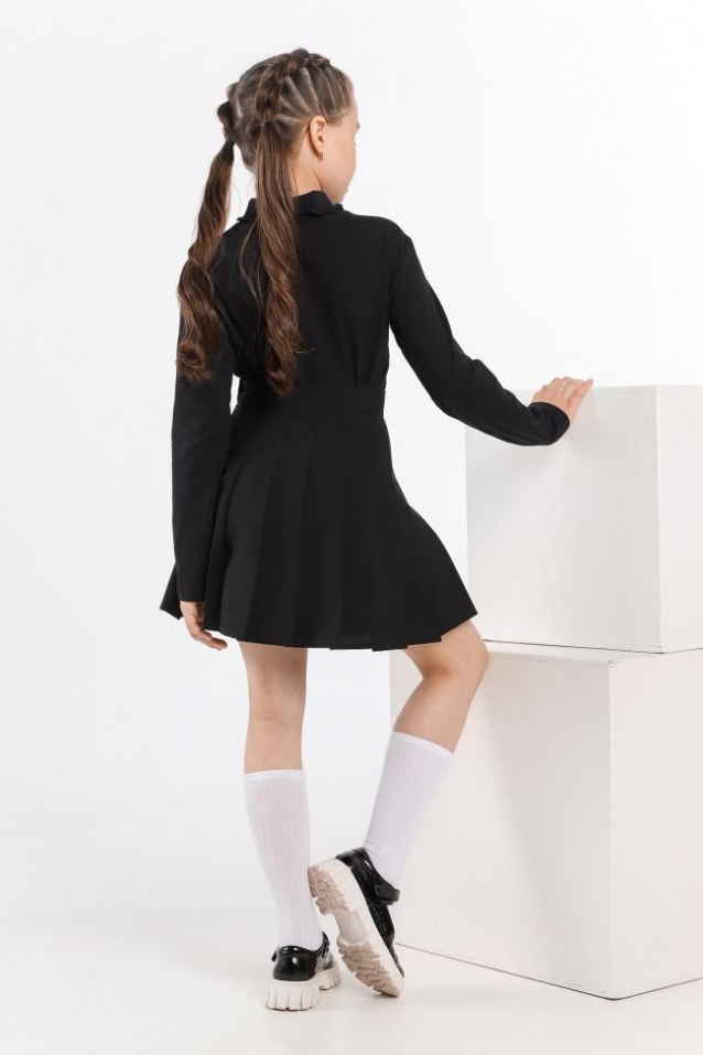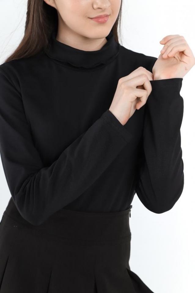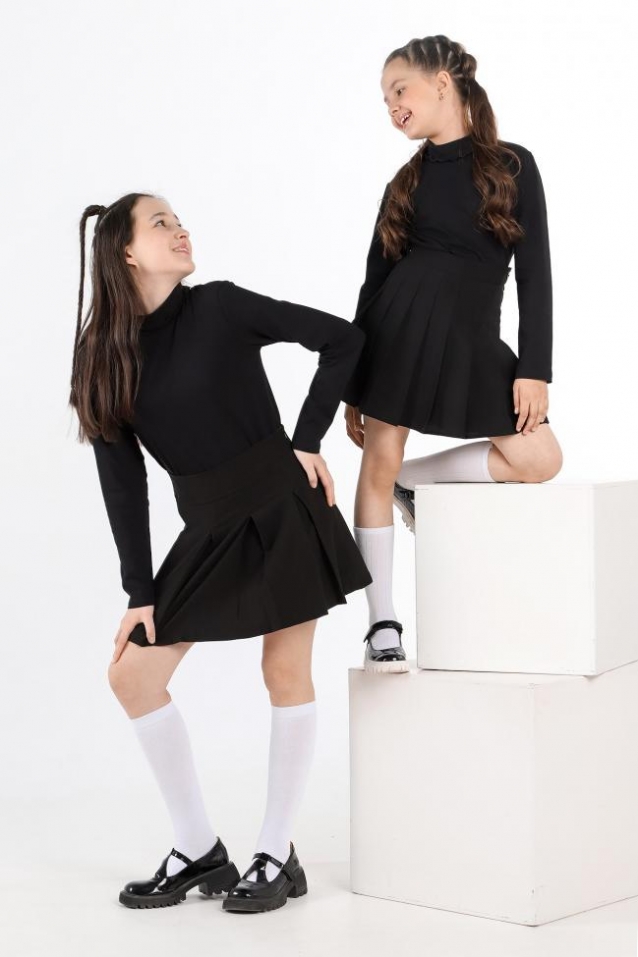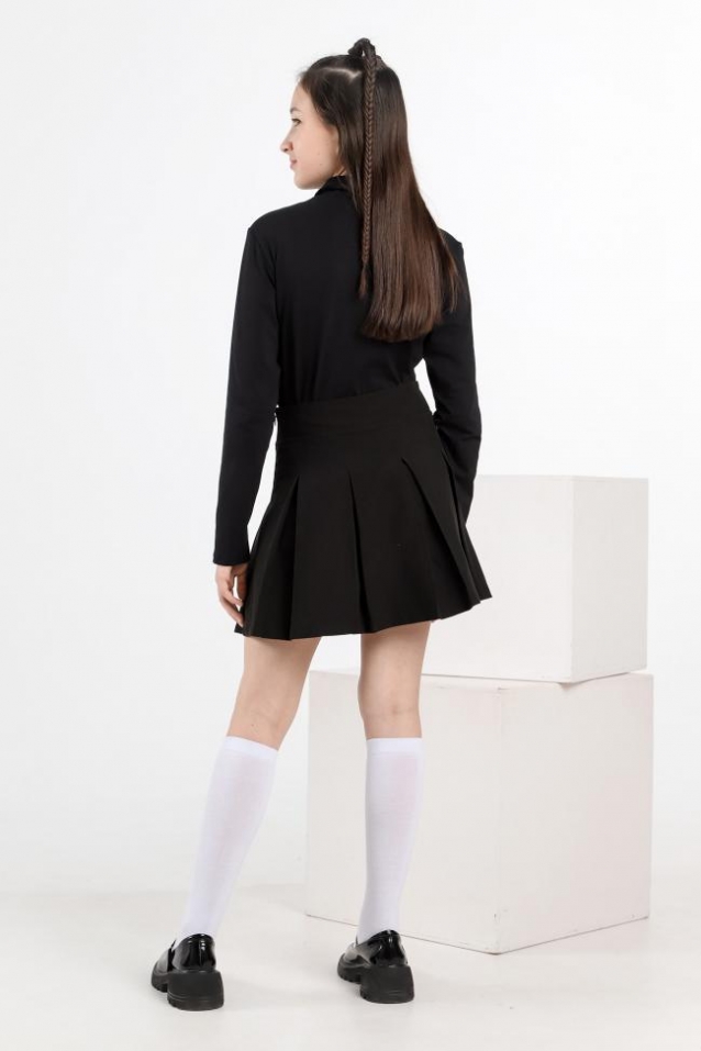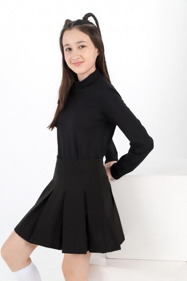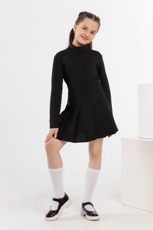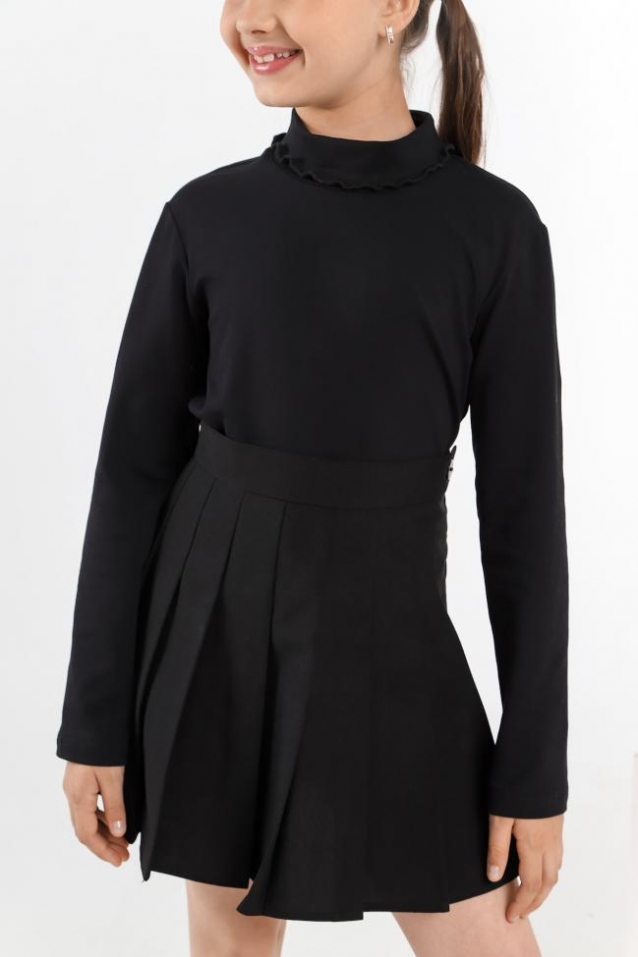 Параметры модели на фото (рост, Ог-От-Об): 135, 68-58-74 Базовая водолазка для девочки из трикотажного хлопкового полотна с лайкрой. В модели воротник-стойка с прегибом и с волнистым краем. Комментарии к товару