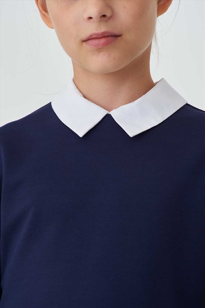 ID товара: 1220996 Акции: -5%, до 24.11.2025 Состав: 58% Вискоза, 37% Полиэстер, 5% Полиуретан Сезон: Демисезон Длина: Средняя Фасон: Прямой Рукав: Длинные Вырез горловины: Отложной воротничок Основная ткань: Вискоза Стиль: Повседневный Страна бренда: Россия Страна производства: Россия Элегантный джемпер из трикотажа, классического темно-синего цвета. С отложным съемным белым воротником и длинными рукавами с манжетами из фактурной резинки в контрастную красно-белую полоску. Застежка на потайную молнию на спинке обеспечивает идеальную посадку. Комментарии к товару