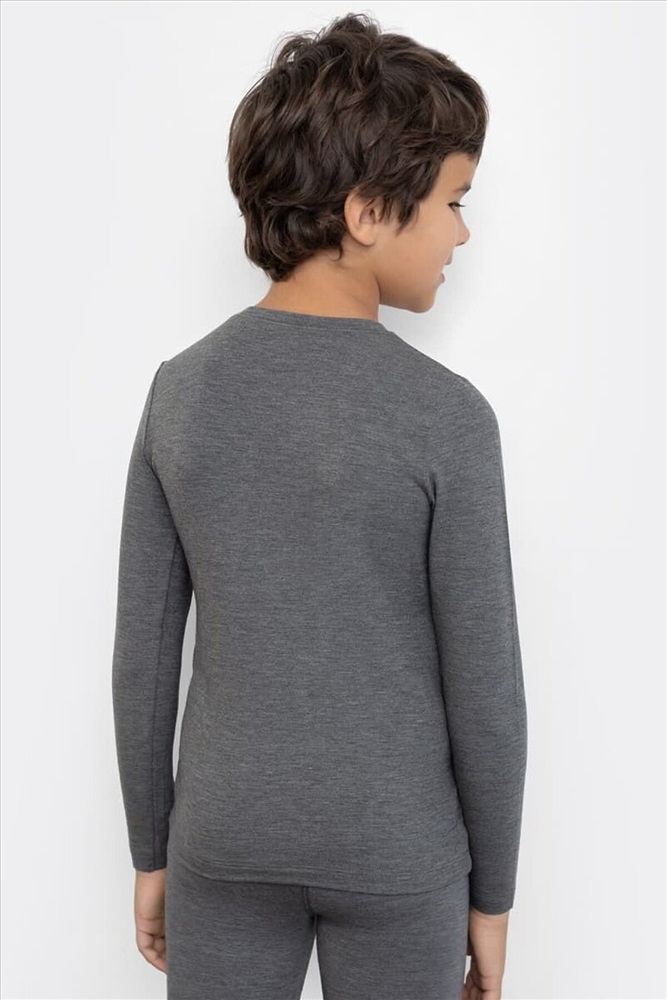 Джемпер из особого трикотажного полотна. Силуэт прилегающий, длина до линии бедер, рукава длинные, горловина округлая. В состав полотна, созданного по японской технологии, входит микроакрил, который благодаря своей толщине (меньше волоса человека в 10 раз), создает своеобразные воздушные карманы между нитями – именно за счет этого свойства кальсоны так хорошо согревают. Благодаря эффекту натуральной шерсти выдерживает температуры до -30 градусов Цельсия. Лучше для зимы не придумать!
