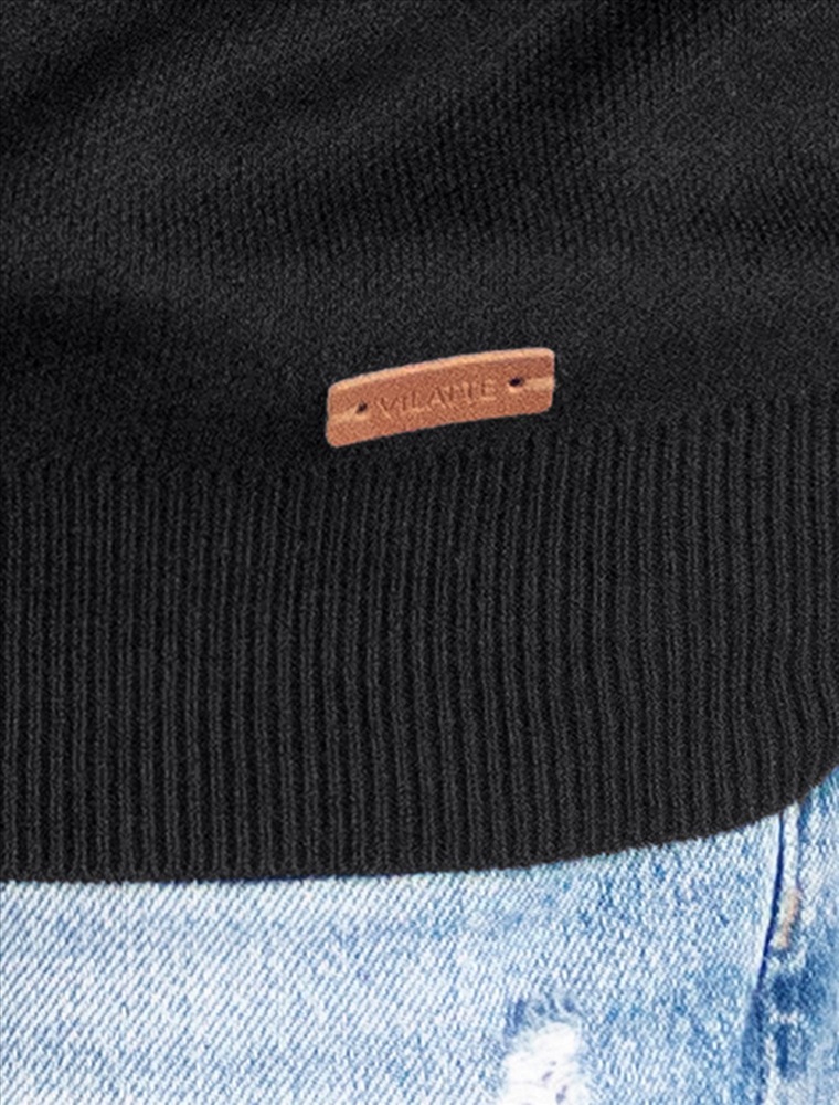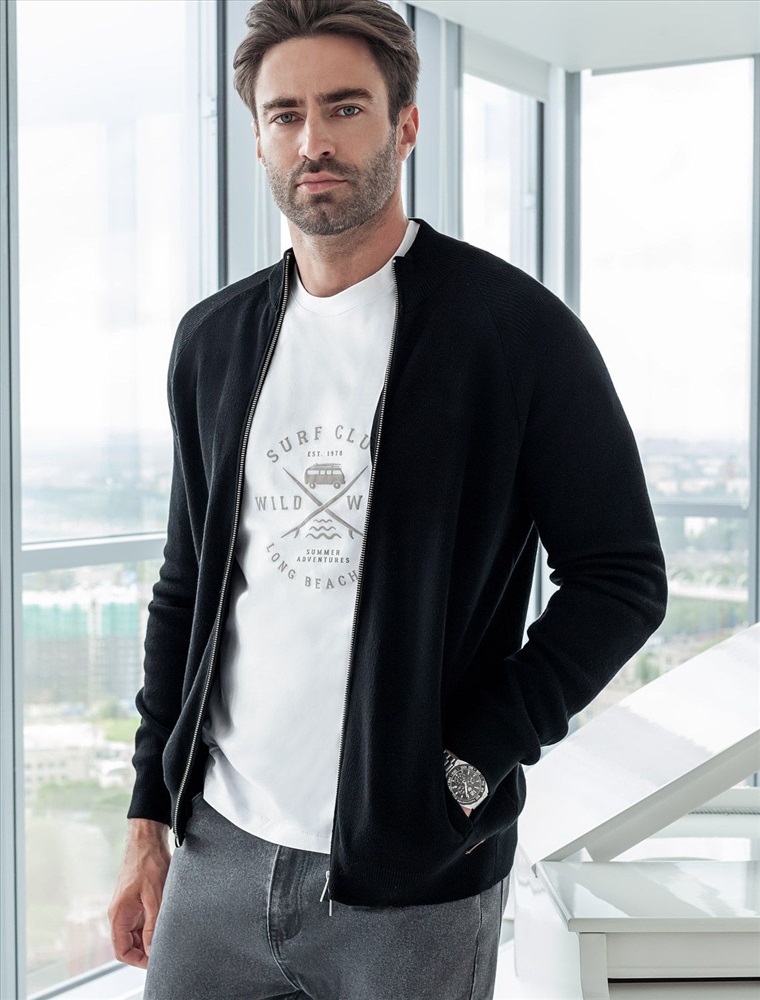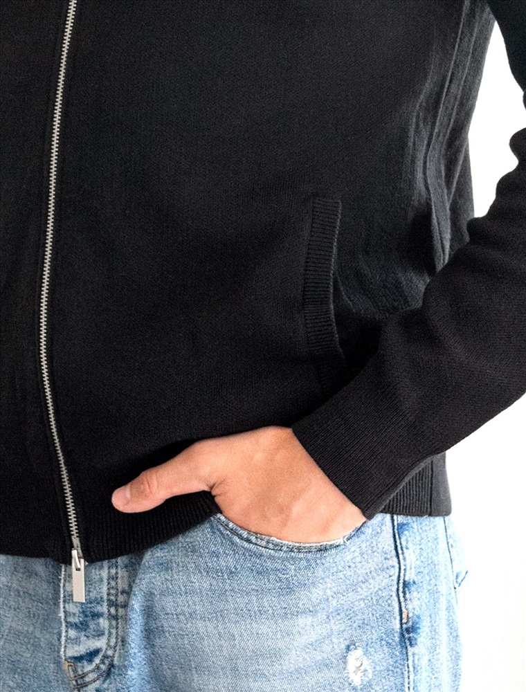Черный джемпер с длинными рукавами поддержит образы любой палитры и сложности. За многофункциональность отвечают лаконичный крой и застежка на молнию. Изделие связано из премиального хлопка с добавлением акрила, которые не дадут замерзнуть в прохладный день на улице, но при этом не перегревает в помещении.