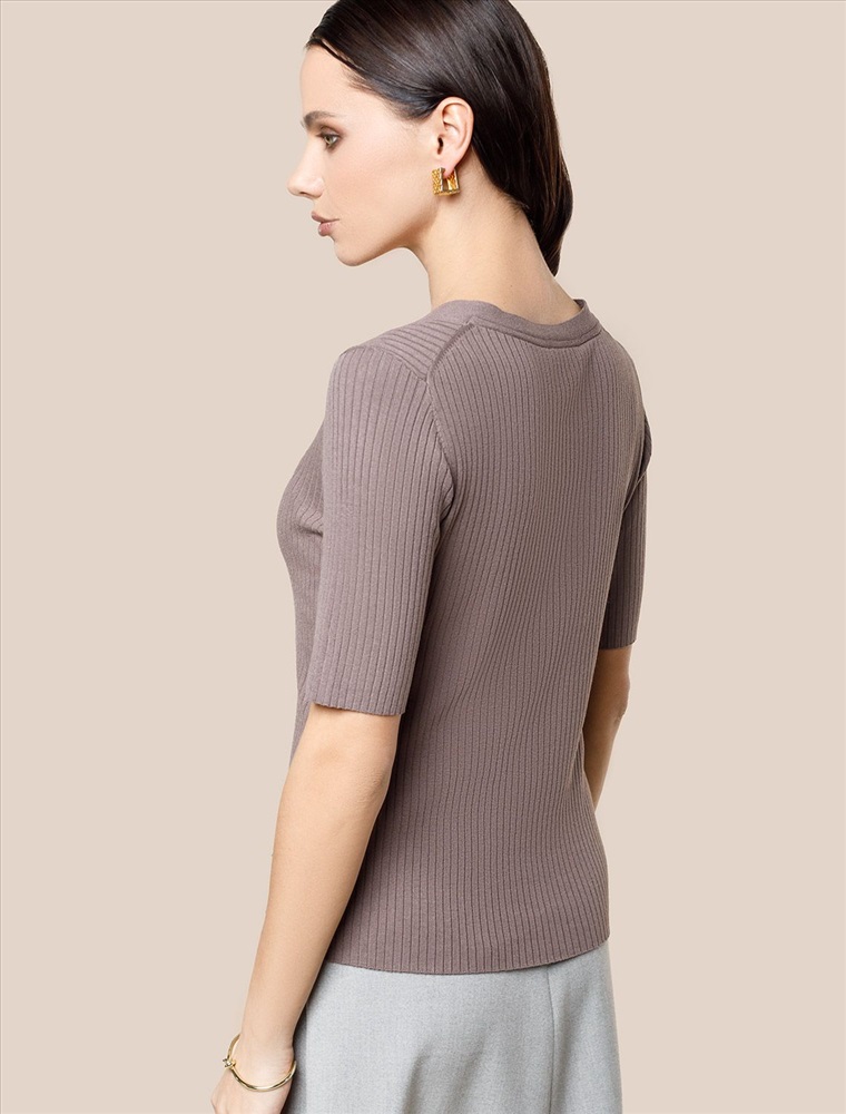 Состав: 83%Вис 17%ПА; Плотность: 12 GG; Параметры модели на первом фото: Рост 170, бюст 83, талия 64, бедра 88; Размер товара на первом фото: 42 Джемпер тонкой вязки из вискозы с нейлоном. Модель с V- вырезом прилегающего силуэта дополнена золотистыми пуговицами. Мягкая очень приятная к коже пряжа хорошо держит форму и гарантирует комфорт во время носки в течение всего дня. Изделие дополнено фирменным металлическим логотипом бренда.