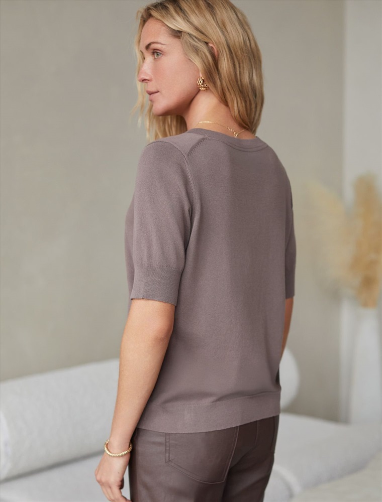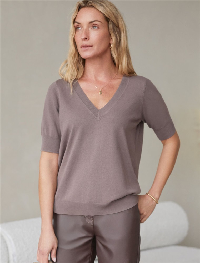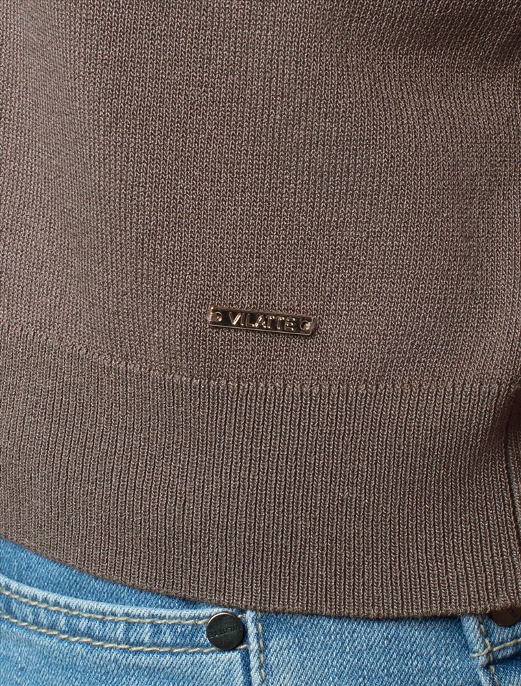 Джемпер тонкой вязки выполнен из вискозы с нейлоном. Модель с V-вырезом свободного силуэта. Мягкая очень приятная к коже пряжа не колется, хорошо держит форму и гарантирует комфорт во время носки в течение всего дня. Изделие дополнено фирменным металлическим логотипом бренда.