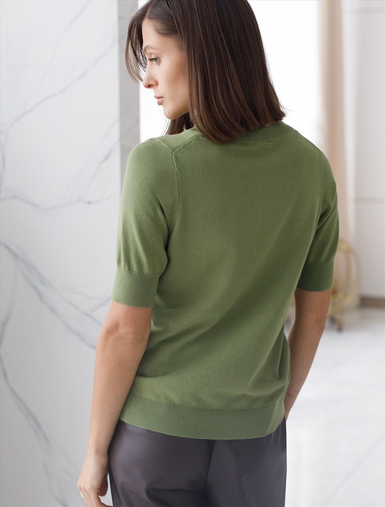 Состав: 83%Вис 17%ПА; Плотность: 12 GG; Параметры модели на первом фото: Рост 170, бюст 83, талия 64, бедра 88; Размер товара на первом фото: 42 Джемпер тонкой вязки выполнен из вискозы с нейлоном. Модель с V-вырезом свободного силуэта. Мягкая очень приятная к коже пряжа не колется, хорошо держит форму и гарантирует комфорт во время носки в течение всего дня. Изделие дополнено фирменным металлическим логотипом бренда.