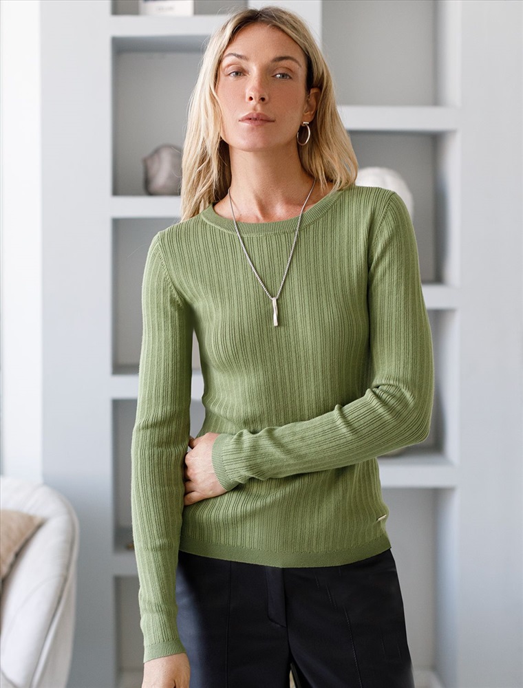 Джемпер тонкой вязки выполнен из вискозы с нейлоном. Модель прилегающего кроя безупречно сидит по фигуре не сковывая движений. Мягкая, приятная к телу пряжа гарантирует комфорт и формоустойчивость в течение долгого времени. Изделие дополнено фирменным металлическим логотипом бренда