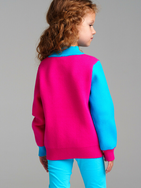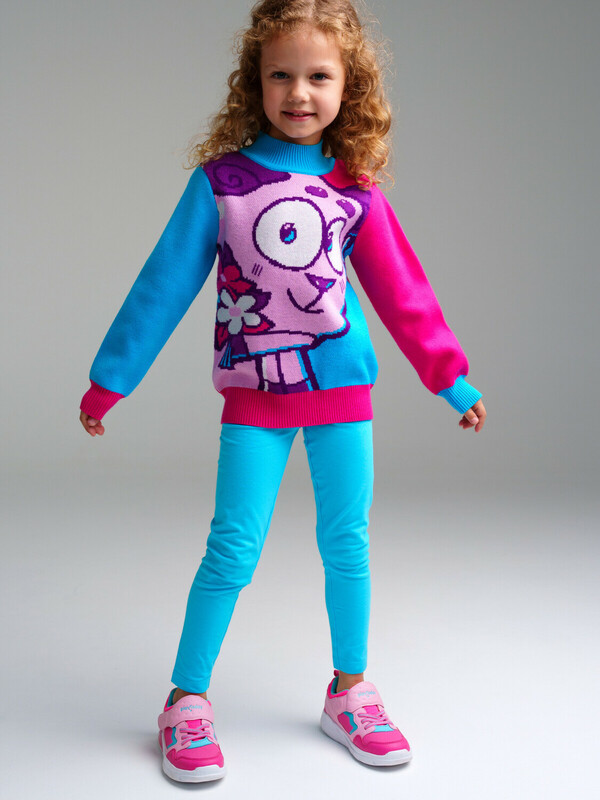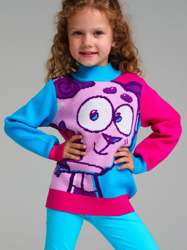 Свитер "Смешарики" из вязаного трикотажа. Высокое содержание вискозы 50%. Вискоза отличается высокой гигроскопичностью - она впитывает влагу и отлично сохраняет тепло. Воротник-стойка. Горловина, манжеты и низ изделия в рубчик.