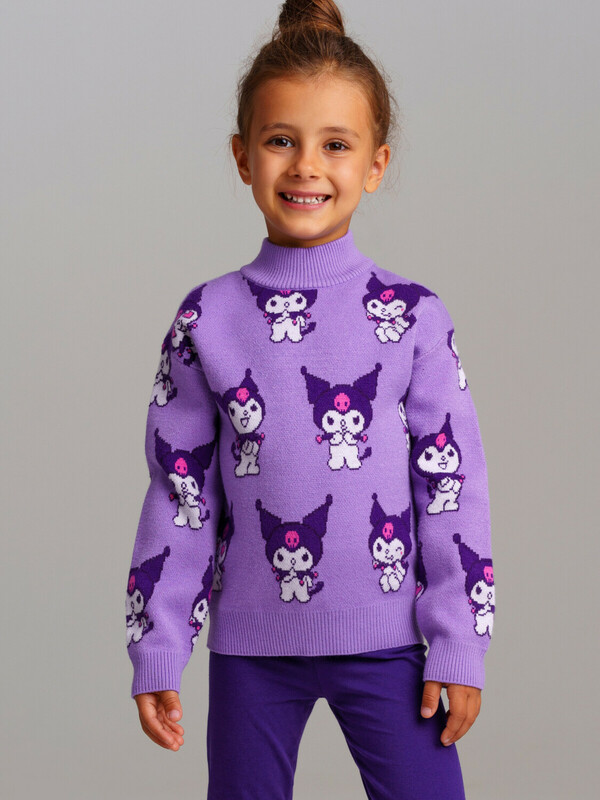 Джемпер детский для девочки. Модный джемпер из вязаного трикотажа с высоким содержанием вискозы. Вискоза хорошо поглощает влагу, отлично пропускают воздух. Изделия приятны к телу, и не вызывают раздражения. Модель из капсульной коллекции UNICORN KUROMI (ЮНИКОРН КОРОМИ). Соберите полный образ в едином стиле! Джемпер будет актуален для детского сада, в садик, для прогулок.