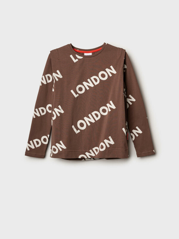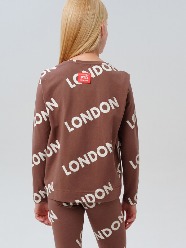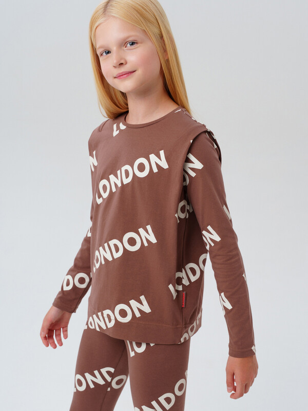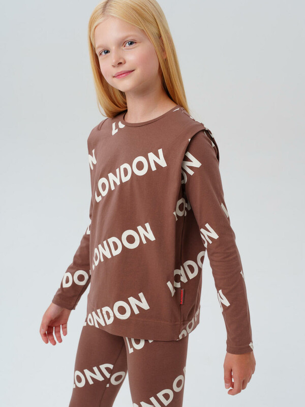 Модный лонгслив оверсайз для девочки подростка от бренда PlayToday — стильная футболка с длинными рукавами из мягкого трикотажного полотна с выразительным принтом LONDON.