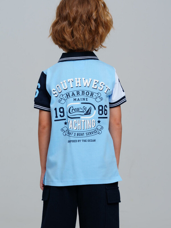 Футболка-поло детская для мальчика. Поло из качественного и приятного на ощупь трикотажа пике. Модель с высоким содержанием хлопка 95%. Благодаря наличию эластана в составе ткани изделие проще в уходе и держит форму. Модель выполнена из качественного и приятного на ощупь трикотажа.