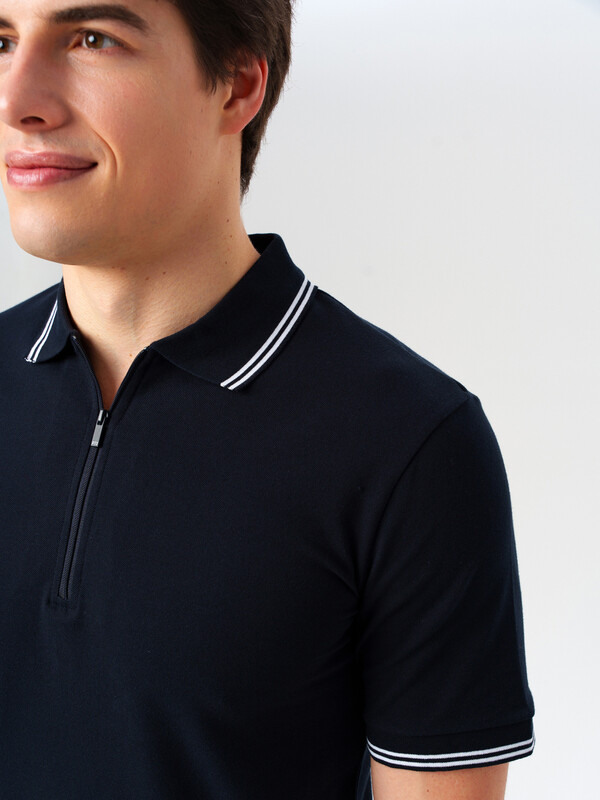 Синее мужское поло из пике - прекрасная альтернатива рубашке. Поло с коротким рукавом больших размеров всегда выглядит стильно. Воротник на молнии. Минималистичный дизайн модели делает поло базовым элементом для комфортного повседневного мужского гардероба. Высокое содержание хлопка 95%. Благодаря наличию эластана в составе ткани футболка проще в уходе и отлично держит форму. Модная прямая форма подарит комфорт, а разрезы по бокам подчеркнут энергичный образ.