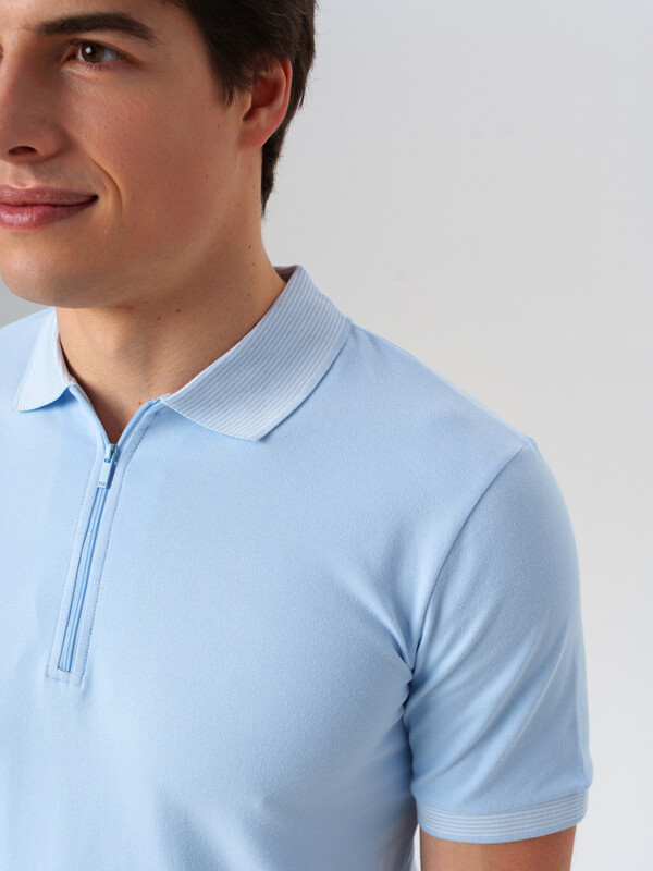 Голубое мужское поло из пике - прекрасная альтернатива рубашке. Поло с коротким рукавом больших размеров всегда выглядит стильно. Воротник на молнии. Минималистичный дизайн модели делает поло базовым элементом для комфортного повседневного мужского гардероба. Высокое содержание хлопка 95%. Благодаря наличию эластана в составе ткани футболка проще в уходе и отлично держит форму. Модная прямая форма подарит комфорт, а разрезы по бокам подчеркнут энергичный образ.