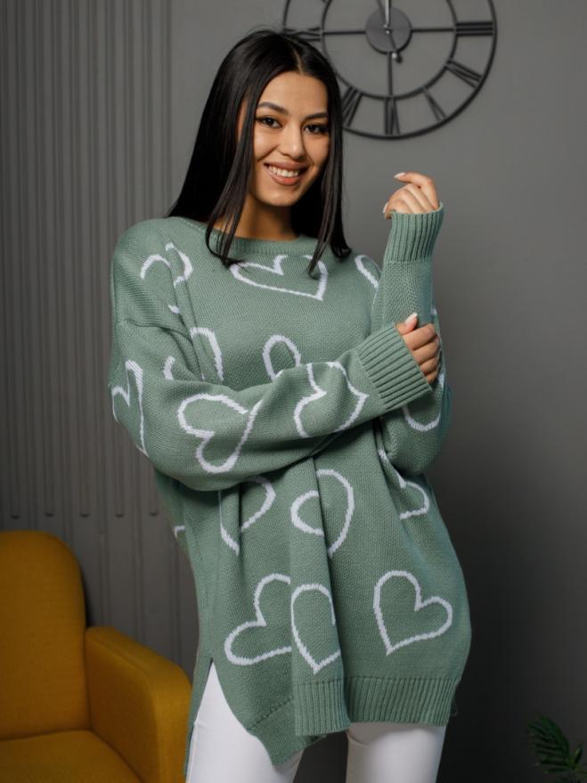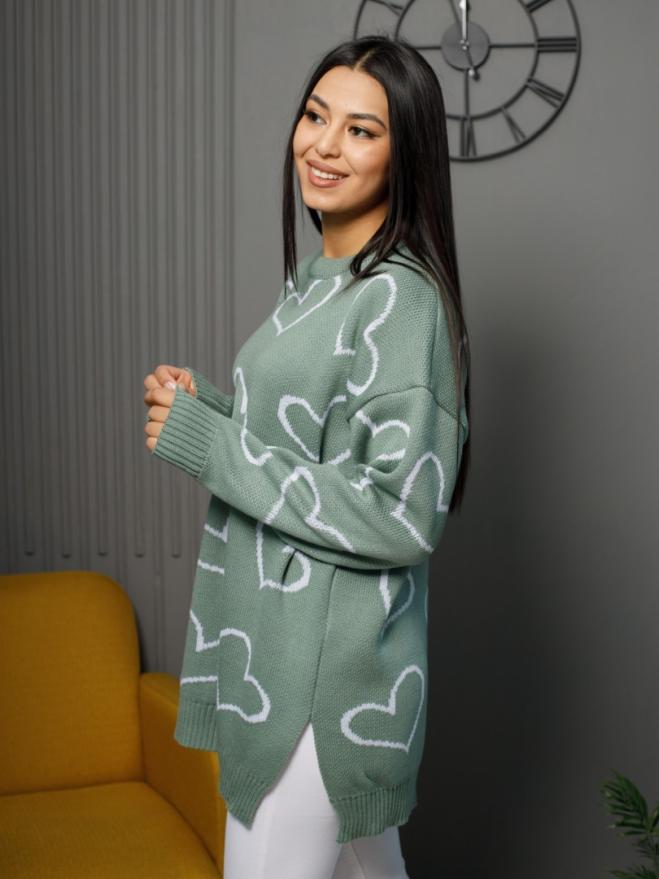 Джемпер удлиненный "Сердца"