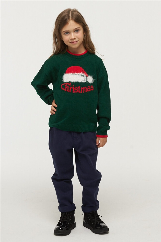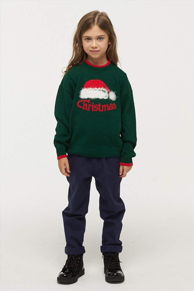 Джемпер для девочек с новогодним принтом на полочке.