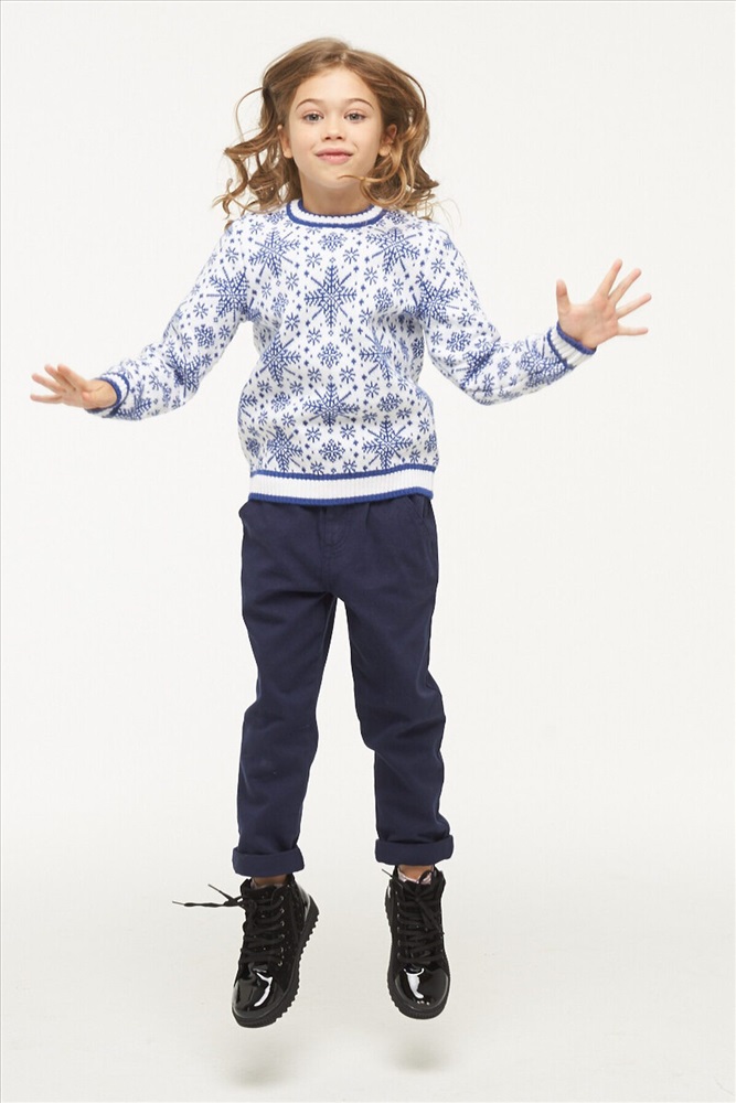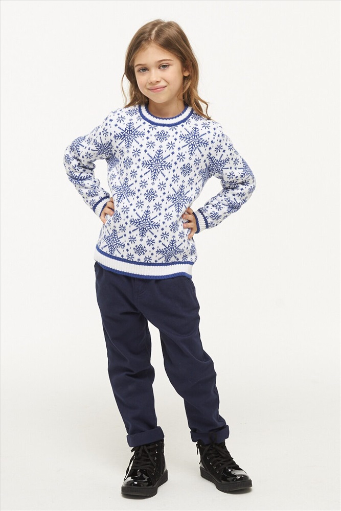 ID товара: 714391 Состав: ПАН 70%, Шерсть 30%, СОРТ I Сезон: Осень/Зима Длина: 34 Фасон: Прямой Рукав: Длинные Вырез горловины: Округлый Рисунок: Фантазийный Основная ткань: ПАН Стиль: Повседневный Страна бренда: Россия Страна производства: Россия Детский вязаный джемпер с узором в виде снежинок. Комментарии к товару