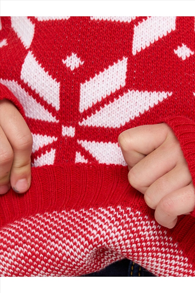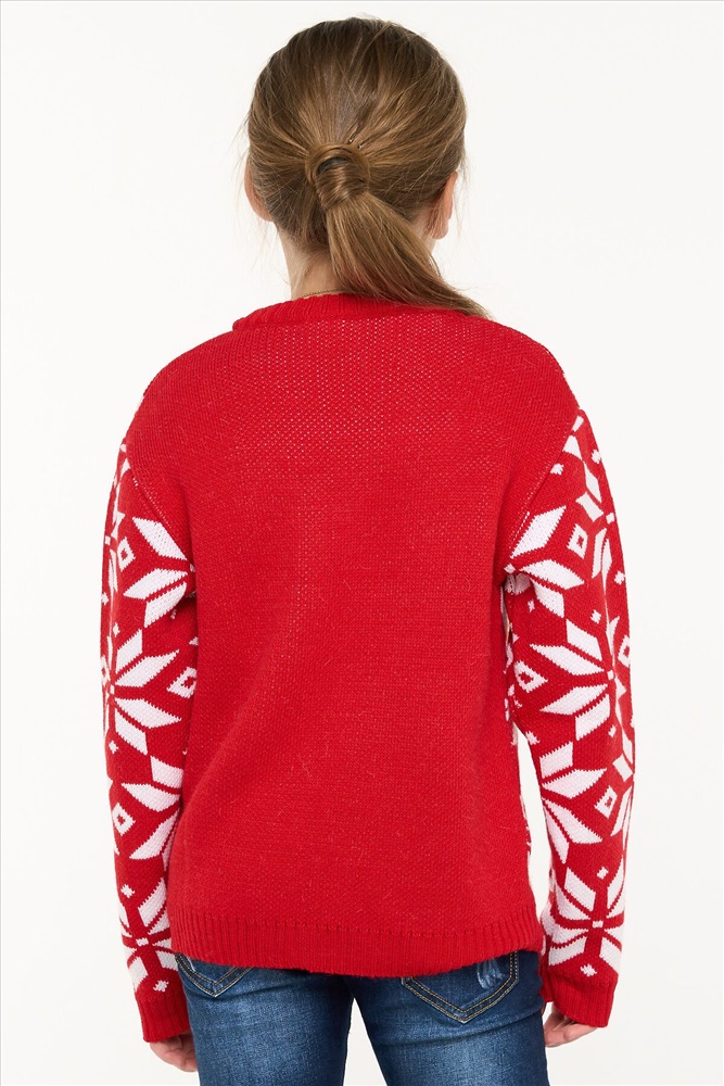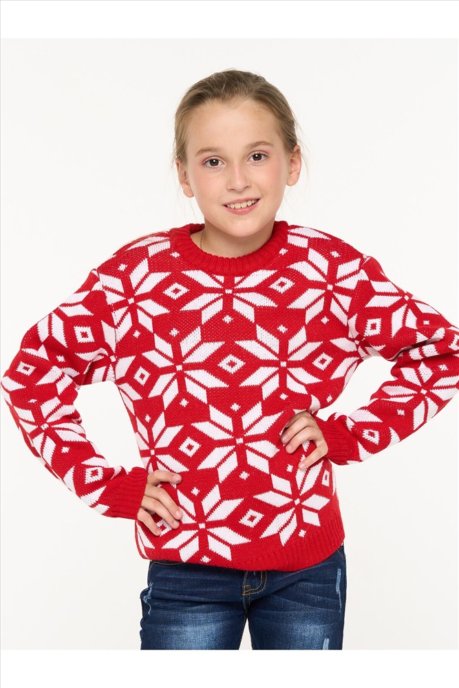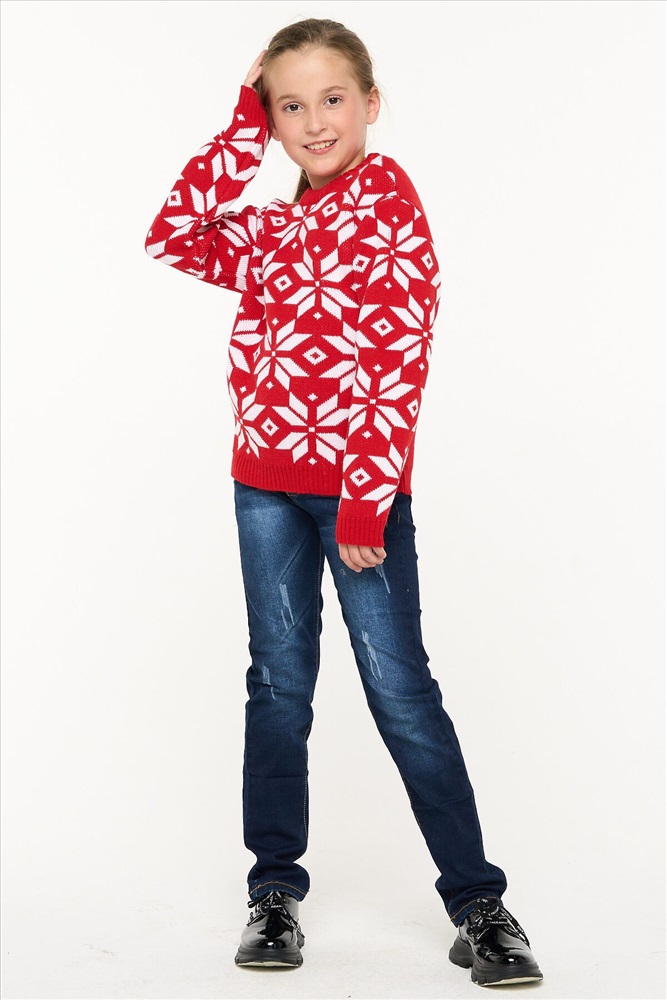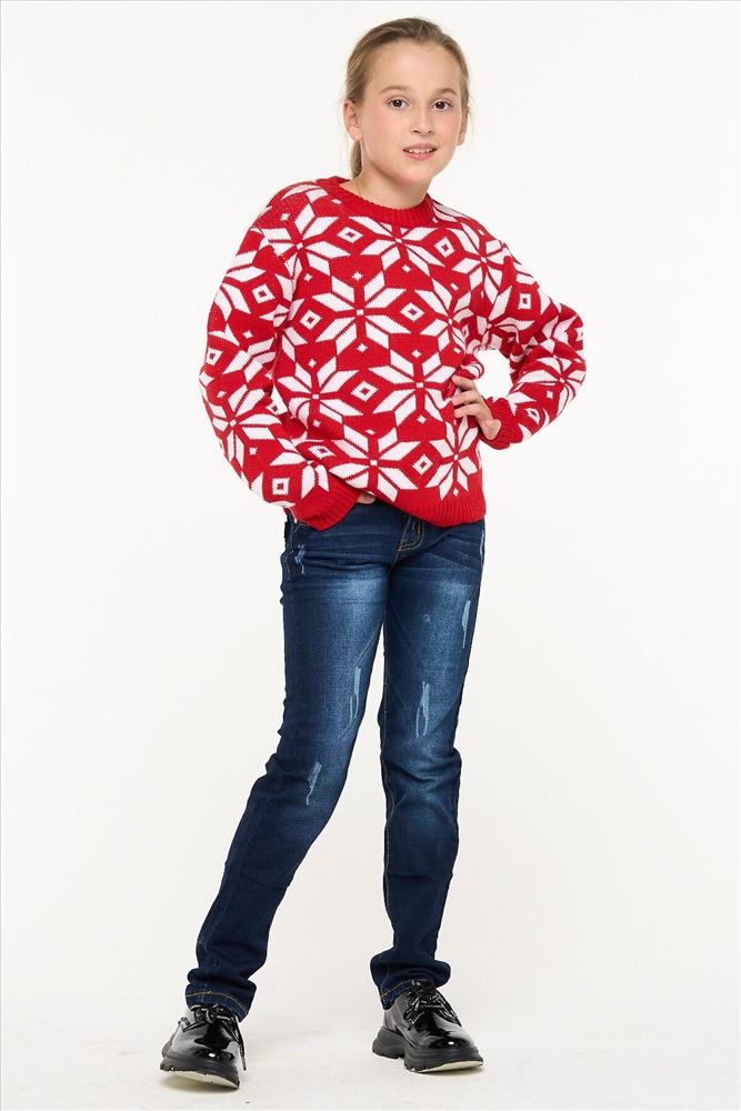 Детский джемпер с округлым вырезом горловины и жаккардовым рисунком.