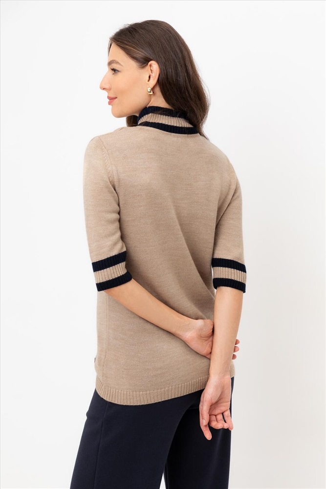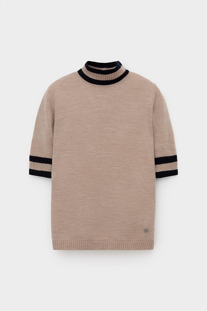 Джемпер в стиле прямой футболки, воротником-стойкой и короткими рукавами. Прямой силуэт, стандартная длина. Средняя плотность вязания, пластичная фактура. Выполнен гладью из мягкой полушерстяной пряжи. Шерсть в составе сохраняет тепло, а благодаря волокнам акрила изделие мягкое и дольше сохраняет форму. Все вязаные изделия проходят дополнительную влажно-тепловую обработку по итальянской технологии, что гарантирует минимальную усадку во время носки. Сделано в России