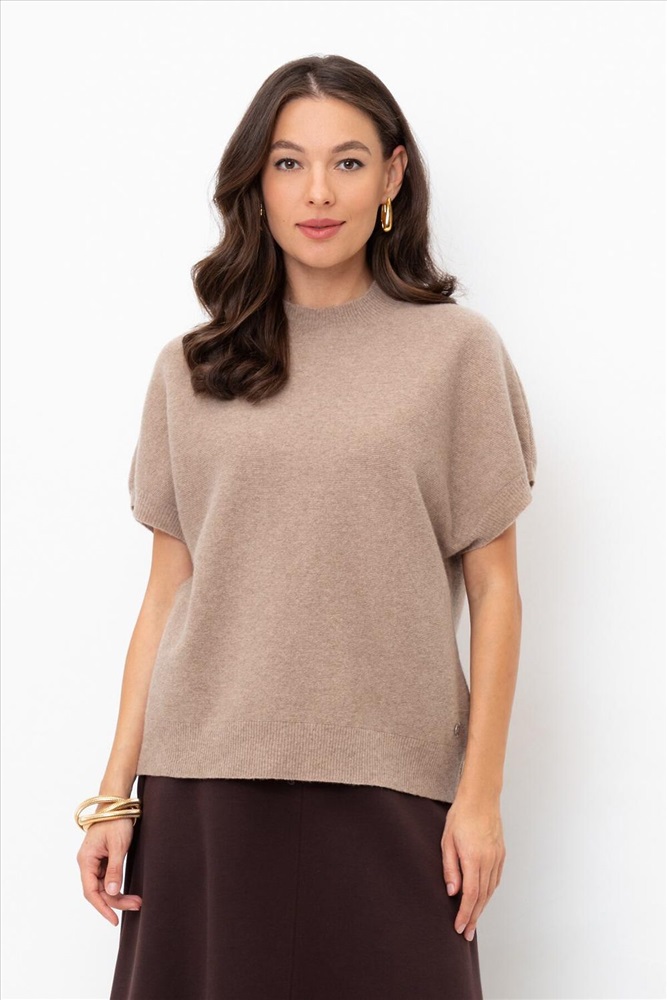 Уютный вязаный джемпер с короткими рукавами из шерсти. Комфортная посадка и цельнокроенные рукава придают изделию объем. Все вязаные изделия проходят дополнительную влажно-тепловую обработку по итальянской технологии, что гарантирует минимальную усадку во время носки. Сделано в России