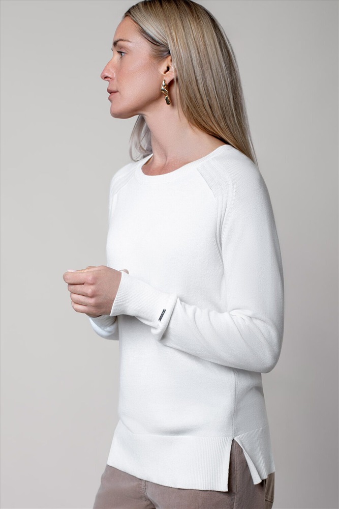 Страна производства: Китай Джемпер тонкой вязки выполнен из хлопка с добавлением кашемира. Лаконичная модель с круглым вырезом дополнена декоративными швами и металлическим логотипом бренда. Мягкая и очень приятная пряжа совершенно не колется, сохраняет тепло при этом не перегревая, гарантируя безупречный комфорт.