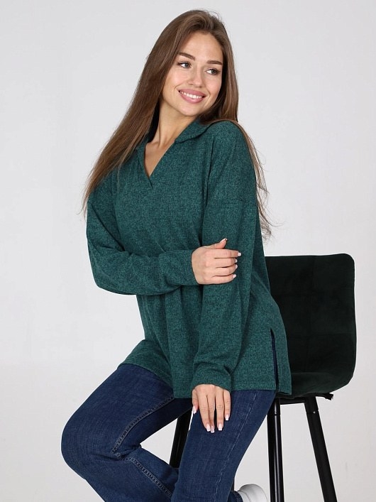 Утепленное поло свободного силуэта из ангоры кашемир, со спущенным плечом, с отложным воротником. Рукав втачной длинный, разрезы в боковых швах. Комментарии к товару