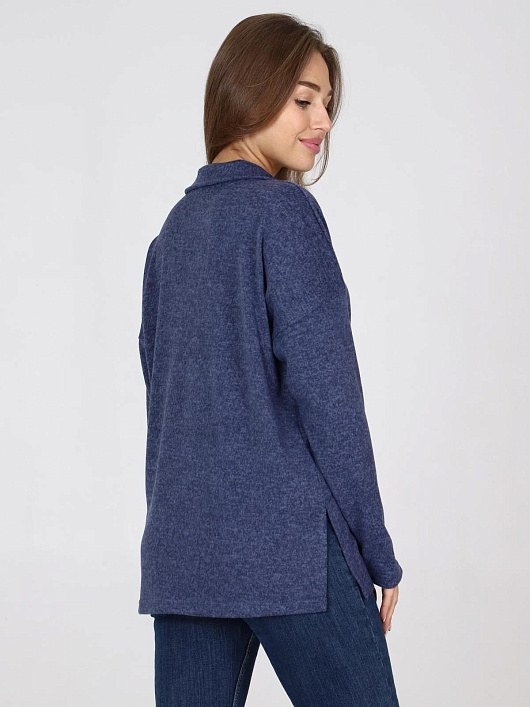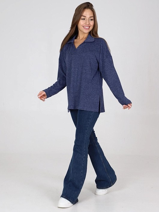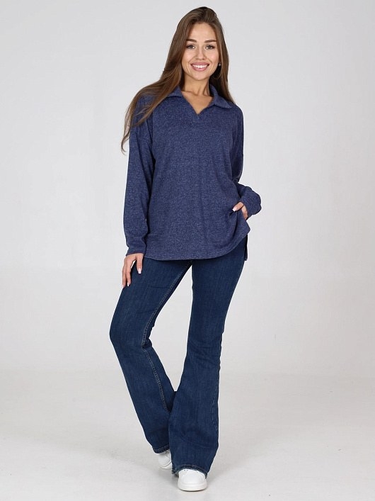 Утепленное поло свободного силуэта из ангоры кашемир, со спущенным плечом, с отложным воротником. Рукав втачной длинный, разрезы в боковых швах.