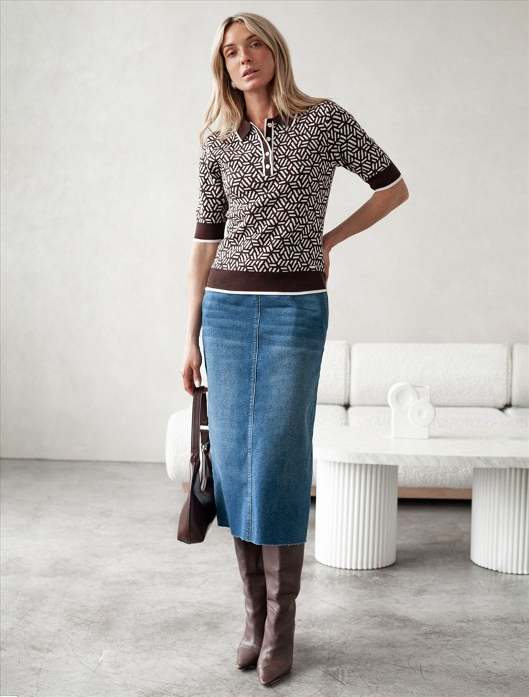 Состав: 50%Вис 20%ПА 20%ПЭ 10%Кашемир; Плотность: 12 GG; Параметры модели на первом фото: Рост 172, бюст 88, талия 64, бедра 88 Джемпер жаккардовой вязки выполнено из нежной пряжи на основе вискозы с добавлением кашемира. Модель прямого силуэта с застежкой планкой как у поло. Фигурные золотистые пуговицы вносят изысканности и роскоши. Изделие приятно ощущается на теле и поддерживает комфортный микроклимат. Сочетается в комплекте total-look с жакетом D31.150
