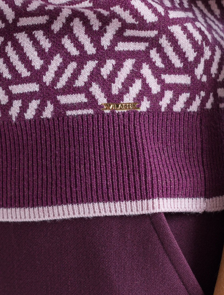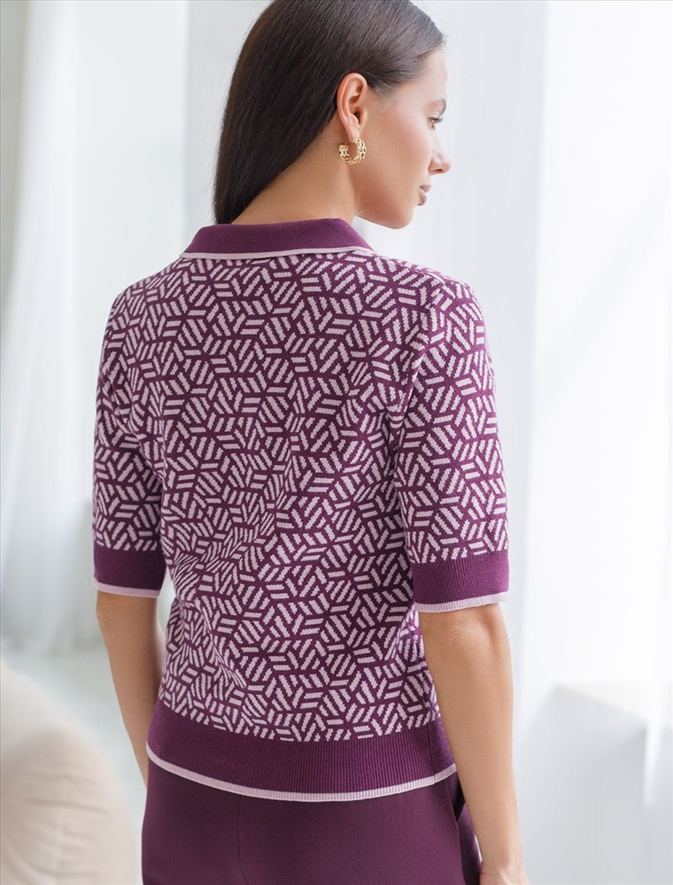 Состав: 50%Вис 20%ПА 20%ПЭ 10%Кашемир; Плотность: 12 GG; Параметры модели на первом фото: Рост 172, бюст 88, талия 64, бедра 88 Джемпер жаккардовой вязки выполнено из нежной пряжи на основе вискозы с добавлением кашемира. Модель прямого силуэта с застежкой планкой как у поло. Фигурные золотистые пуговицы вносят изысканности и роскоши. Изделие приятно ощущается на теле и поддерживает комфортный микроклимат. Сочетается в комплекте total-look с жакетом D31.150