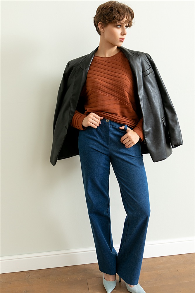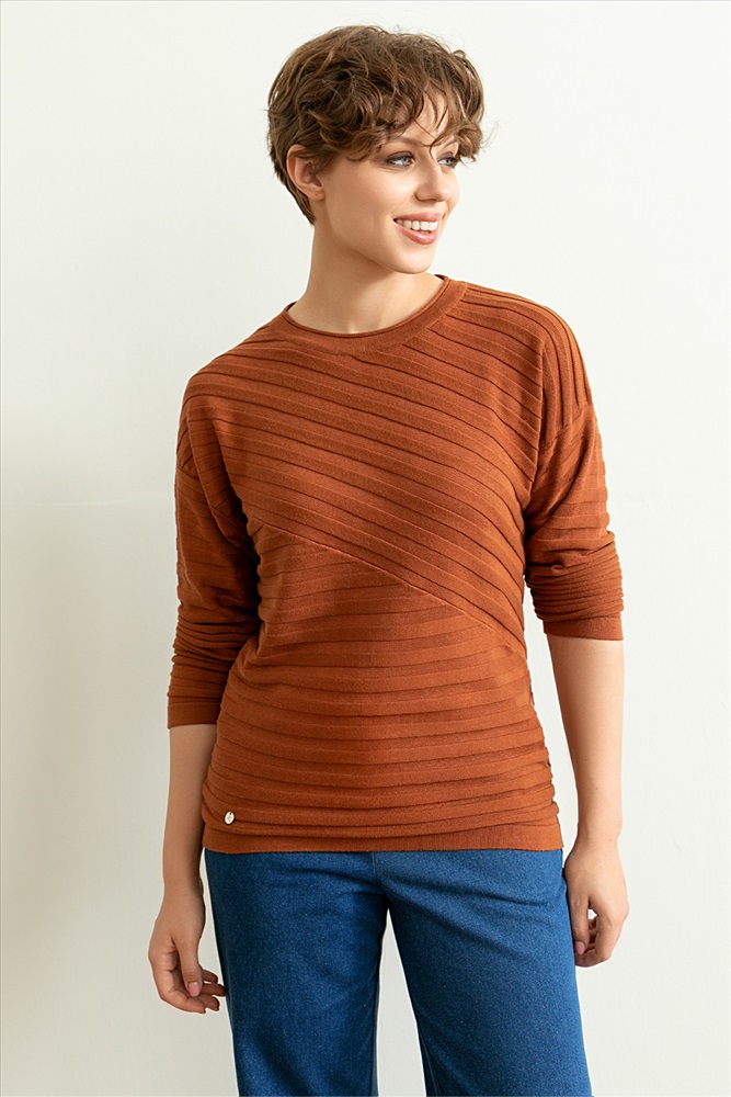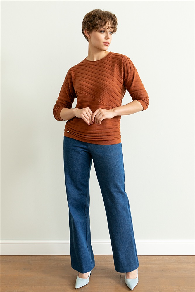 Вязаный джемпер из смесовой пряжи. Полукруглый вырез горловины подчеркивает изящество линии шеи. Джемпер комбинируется как с юбкой, так и с брюками или джинсами, выступает как самостоятельный верх.