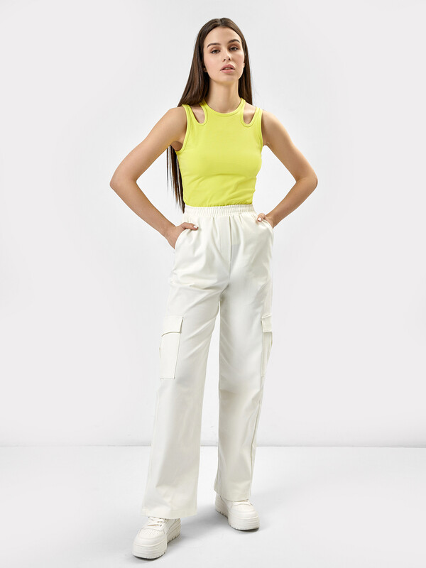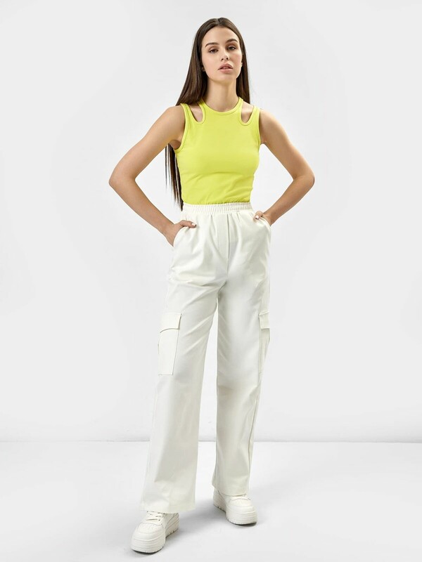 Горловина, вырезы и пройма окантованы бейкой из основного полотна.