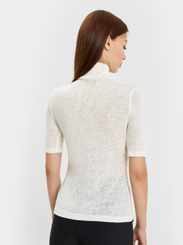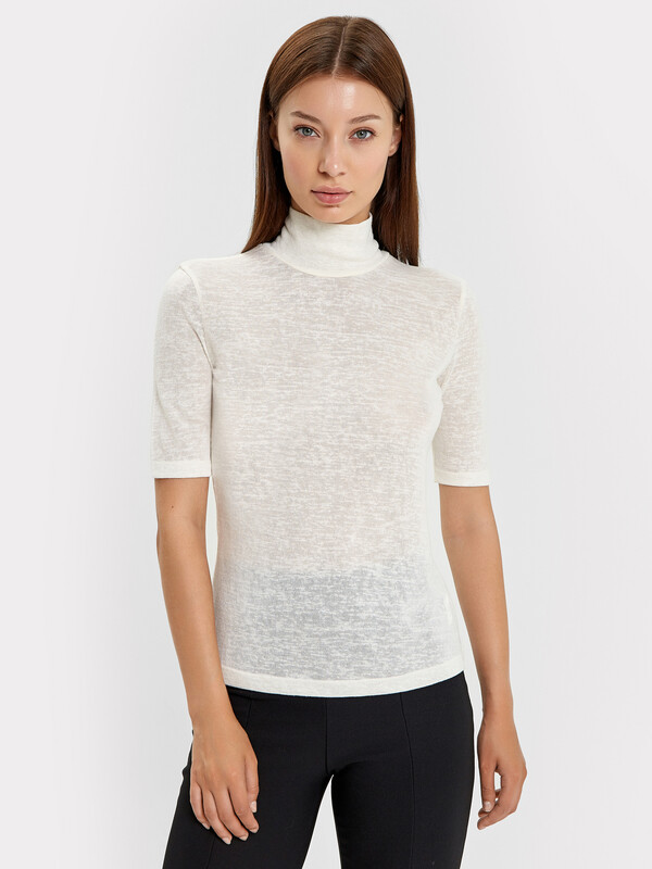 Горловина круглой формы с широким воротником-стойкой из основного полотна. Плечо слека спущено. Рукав втачной длиной по локоть. 75% вискоза; 25% полиэстер Вырез горловины: круглый Декоративные элементы: без элементов Назначение: повседневная Особенности модели: нет Покрой: полуприлегающий Пол: Женский Предмет: Джемперы Тип рукава: короткие Уход за вещами: деликатная стирка при 30 градусах длина изделия по спинке, см.: 60,0 фактура материала: кулирное полотно Комментарии к товару
