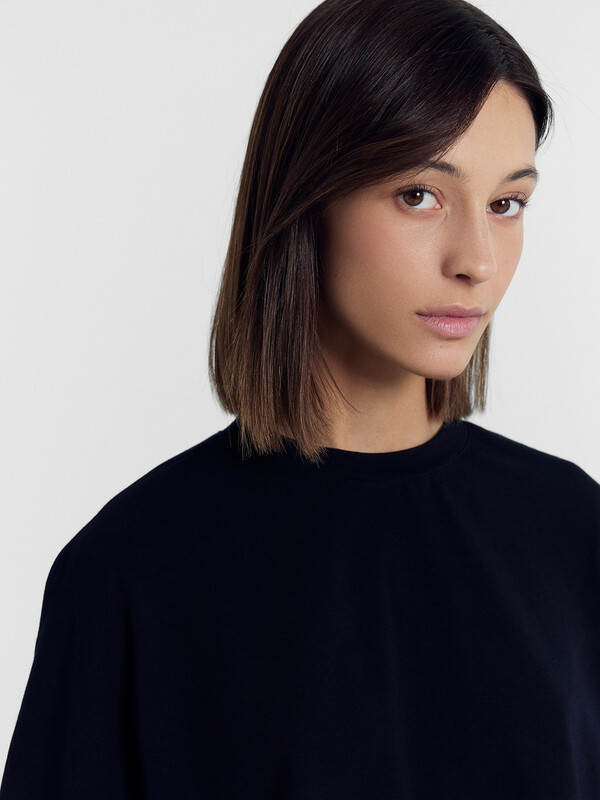 Горловина круглой формы, обтачка горловины из основного полотна. По горловине