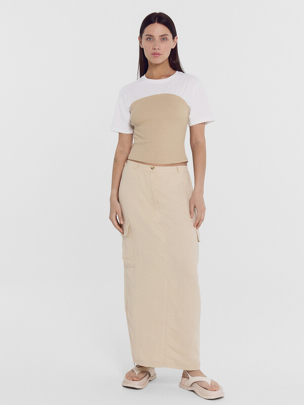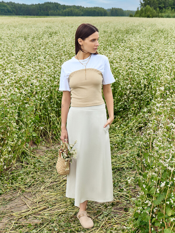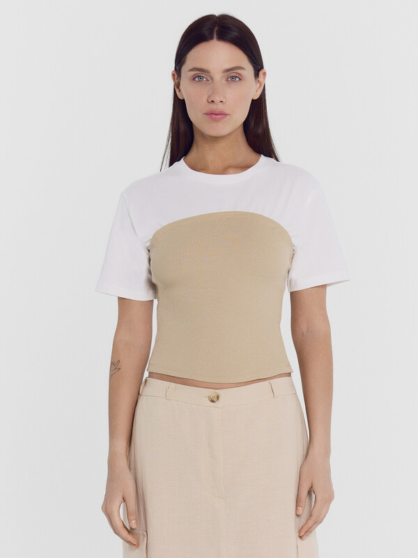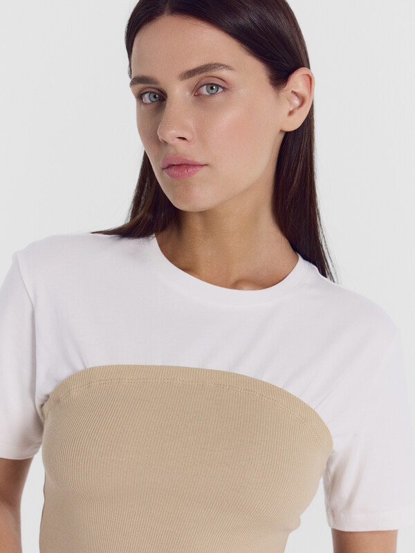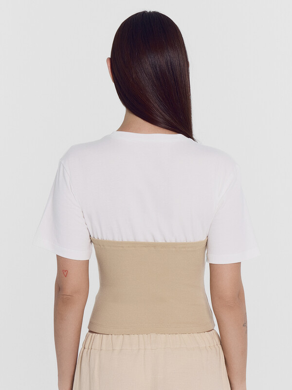Джемпер с отрезной деталью «под корсет» из рибаны. Деталь из рибаны прилегающего силуэта.