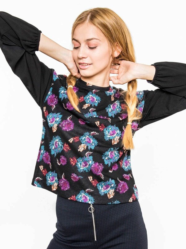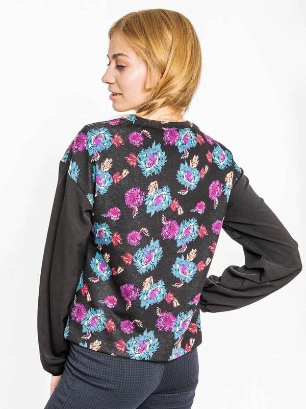 Джемпер изготовлен из трикотажного полотна- футер. Длина джемпера до середины бедер. Силуэт-прямой. Нижний срез необработан