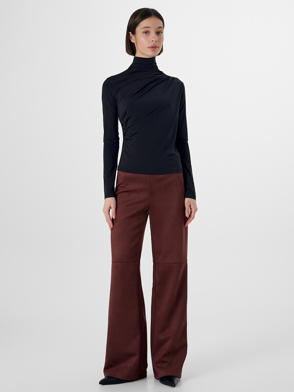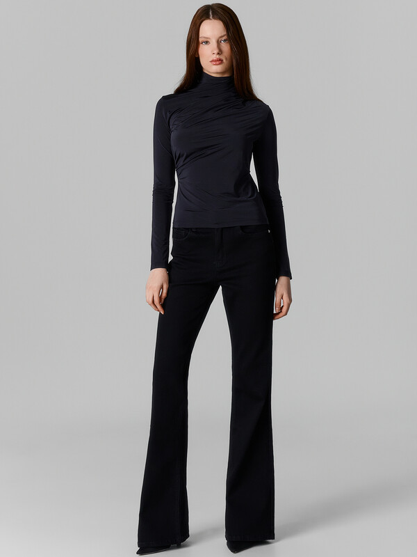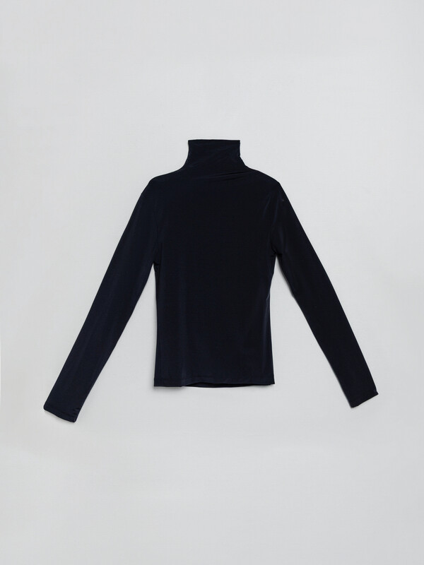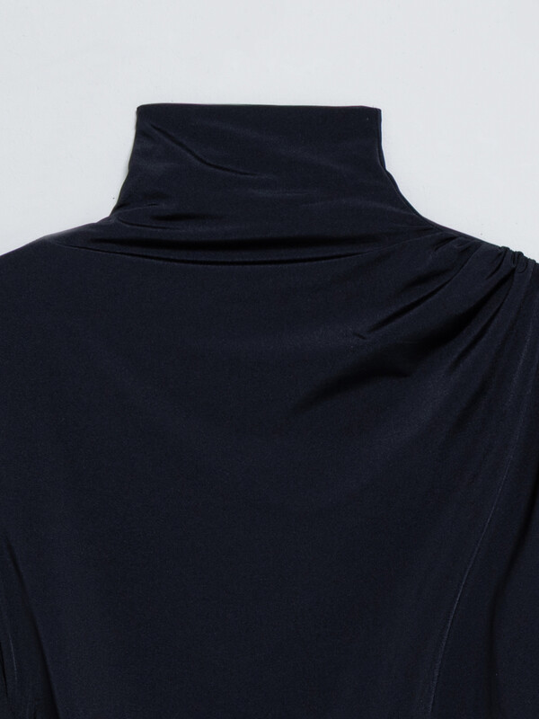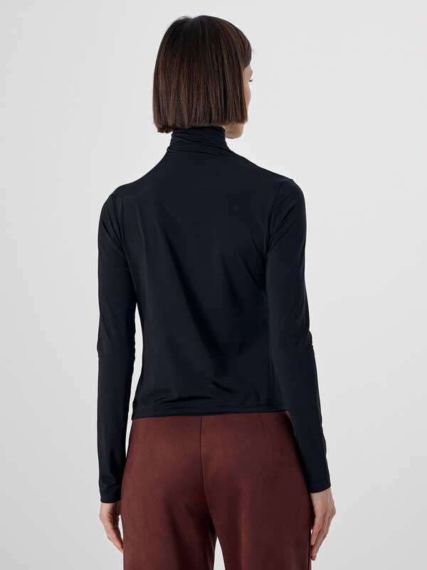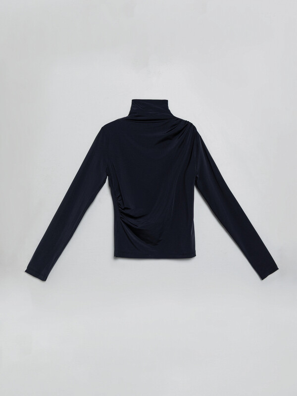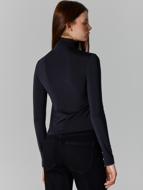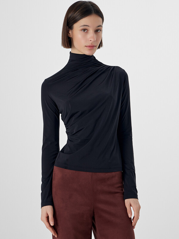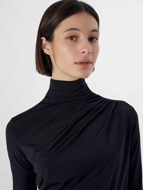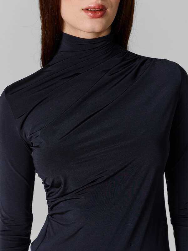 Перед и спинка изделия выполнены как одно целое, что создает гладкую поверхность без лишних швов. Изюминкой модели является изящная драпировка-сборка, заложенная сбоку спереди и в области плеча. Этот элемент добавляет женственности, создавая мягкие живые складки. Высокий воротник-стойка нежно обрамляет горло, придавая образу строгость и законченность. Длинные рукава и низ изделия аккуратно подшиты, что гарантирует сохранение формы после стирок. Материал на основе полиамида с добавлением эластана обладает мягкой гладкой фактурой, приятной к коже. Он обладает хорошей эластичностью, деликатно облегая тело и не стесняя движений. Этот джемпер станет универсальным решением для офиса, встречи или прогулки, легко сочетаясь с юбками, брюками или джинсами. 83% полиамид; 17% эластан Комментарии к товару