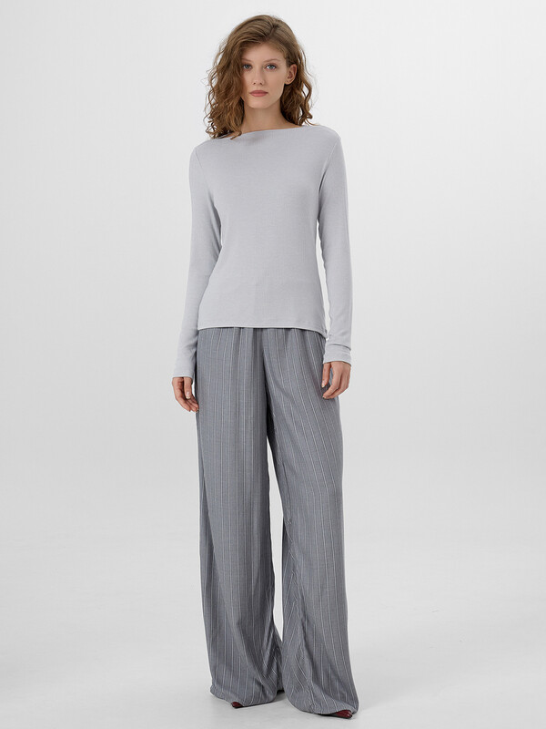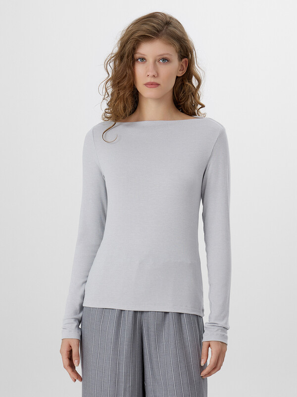 Джемпер прилегающего силуэта. Рукава втачные длинные. Горловина лодочка, с цельнокроеной обтачкой.