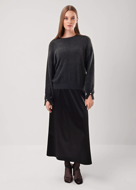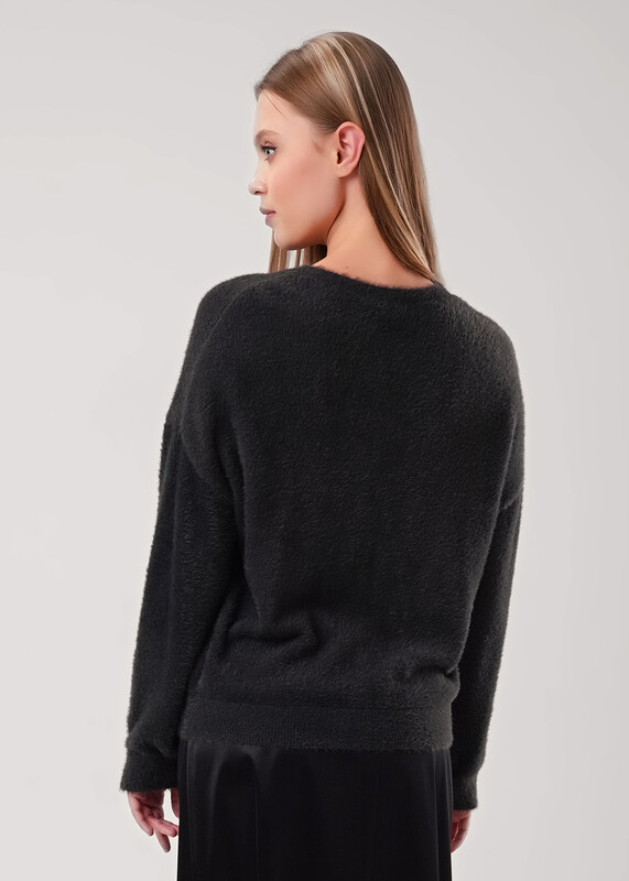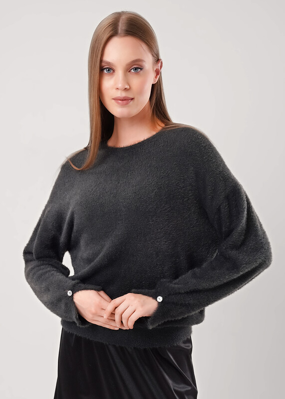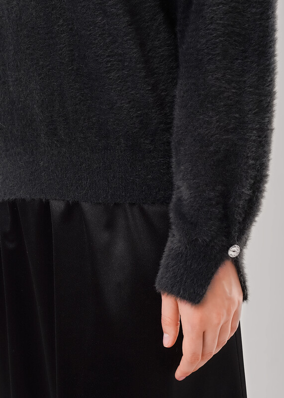 Производитель: Clever Вязаный джемпер умеренного объема, из фасонной пряжи ""травка"", переплетение гладь. Спущенная линия плеча, длинный рукав. Округлая горловина с бейкой. По низу изделия и рукавов узкие манжеты. По низу рукава разрез с пуговицей.