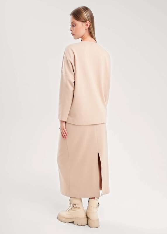 Производитель: Clever Джемпер свободного кроя из трикотажного поливискозного полотна джерси. Спущенный длинный рукав. Округлая горловина с обтачкой. Спереди резы с разным направлением полос. Боковые разрезы. По низу рукава и изделия потайной стежок.