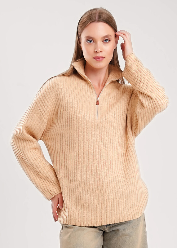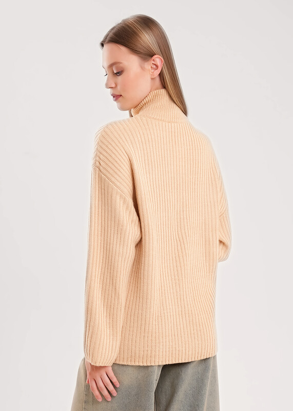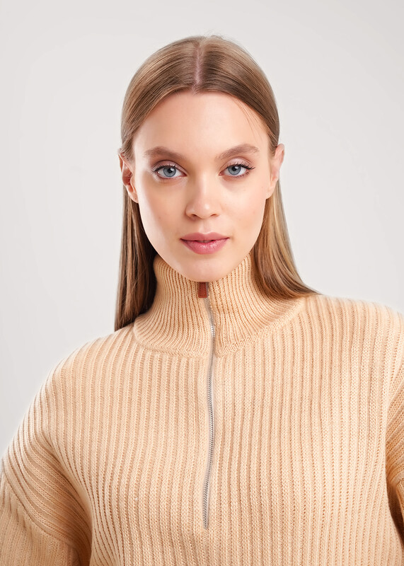 Производитель: Clever Вязаный джемпер умеренного объема из акриловой пряжи с добавлением шерсти, переплетения полуфанг. Спущенный длинный рукав. По горловине стойка с застежкой на молнию.