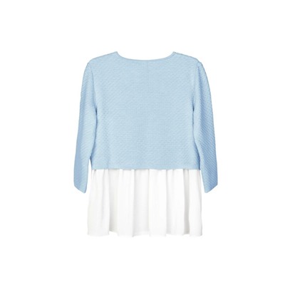 Джемпер прямого силуэта с рукавом длиной 3/4. Нежная вискозная пряжа дарит комфорт и свободу движения. Оригинальная отделка шелковистой тканью сзади создает романтический волнующий образ.