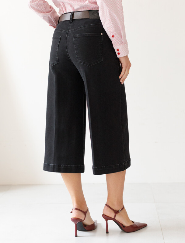Свободные джинсовые бермуды черного цвета из эластичного денима обеспечивают комфорт и стиль в повседневном образе. Длинные классические шорты с пятью карманами выполнены с широким подгибом по низу и со стрелками по всей длине, что эффектно удлиняет ноги и визуально стройнит силуэт. Правильная посадка и классический фасон подходит как для маленьких, так и для больших размеров. Материал эластичен, благодаря чему шорты отлично садятся по фигуре и не сковывают движения, обеспечивает долговечность изделия, сохраняя первоначальный вид даже после многократных стирок и активного использования. Шорты дополнены качественной фуртитурой и брендированным патчем из эко-кожи на поясе.