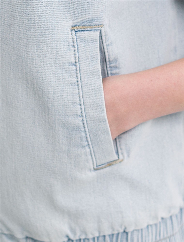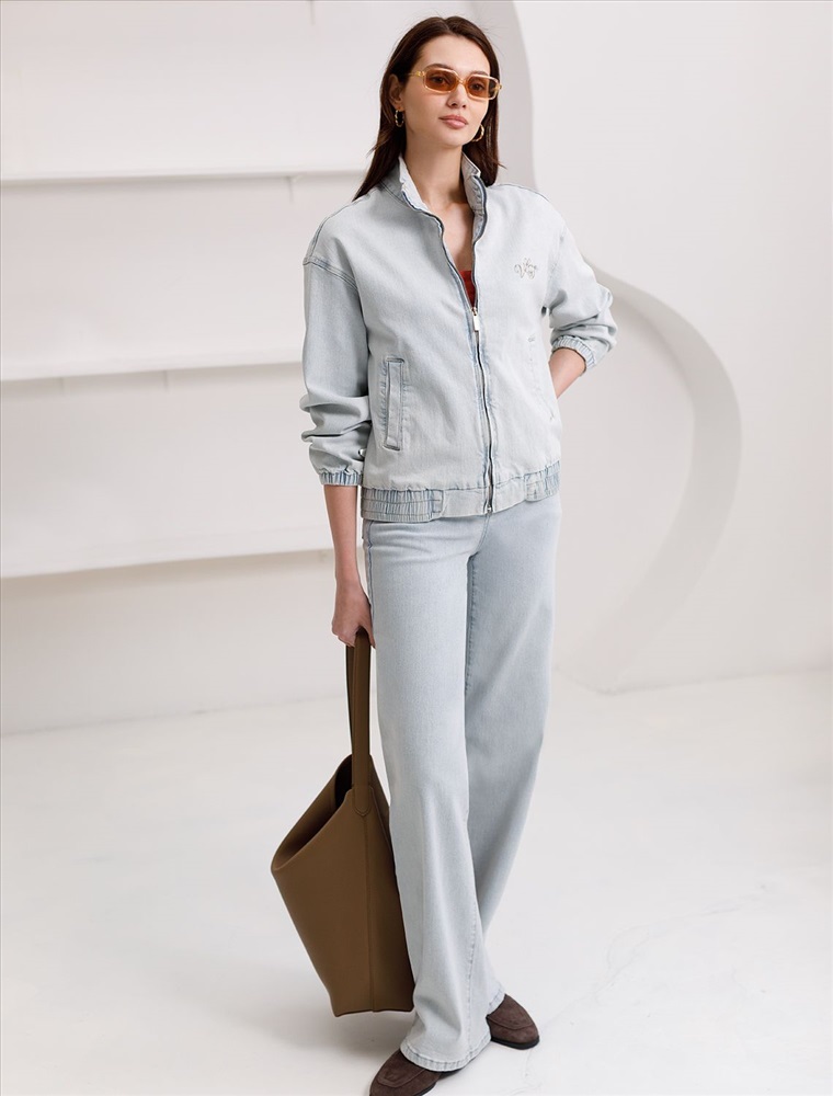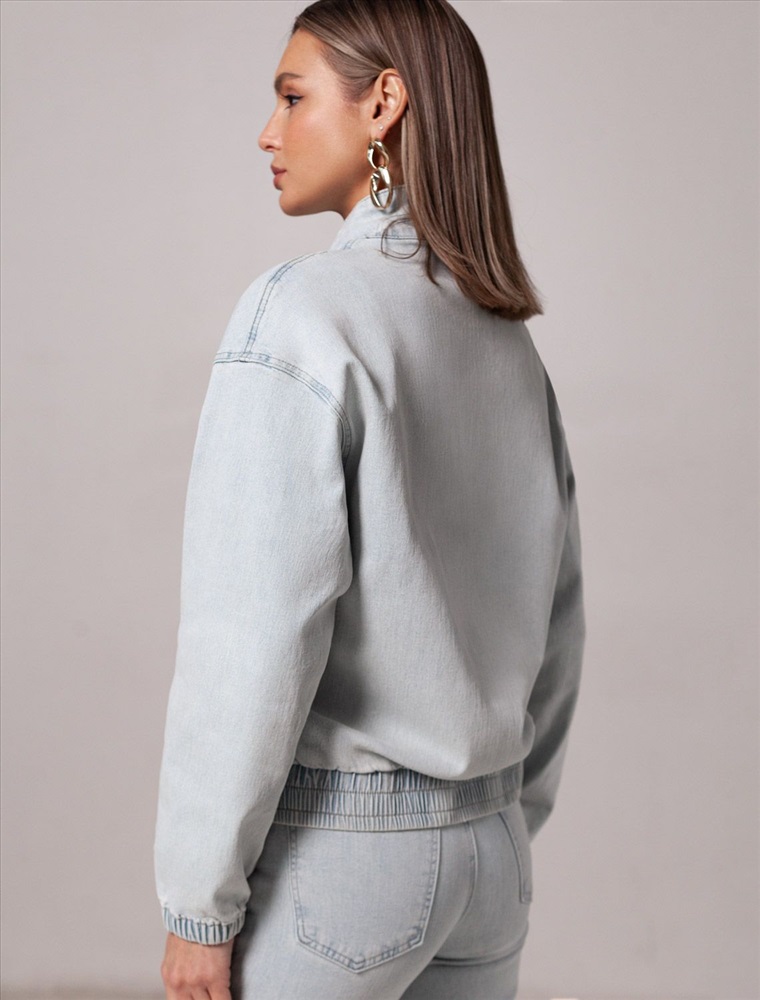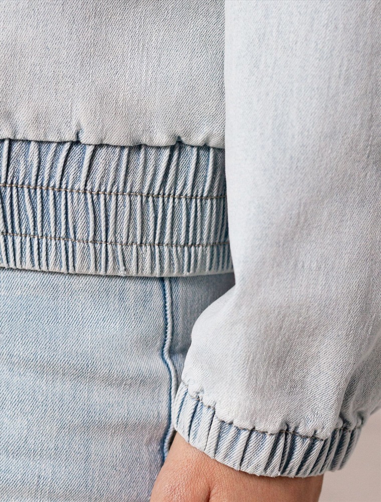 Свободный стильный бомбер светло-голубого цвета выполнен из плтоного денима 12,4 OZ. После пошива изделие подвергли специальному виду вошинга — солт-стоун вошинг, что дословно значит стирка с каменной солью. Такой вид вошинга позволяет получить стильные потертости на голубых оттенках денима. На передней части бомбера выполнена вышивка по авторскому эскизу дизайнера — буквы V L T, оформленные вензельным шрифтом. Сама вышивка выполнена техникой «застил» машинным способом. Этот удобный джинсовый бомбер станет идеальным выбором для теплого сезона. Бомбер оснащен прорезными карманами, которые добавляют практичности и удобства в повседневном использовании. Аккуратная резинка внизу изделия помогает сохранить форму и придает дополнительную защиту от ветра. Воротник-стойка создает современный и стильный образ. Представленная размерная линейка позволяет подобрать оптимальный вариант для любой фигуры и размера, на маленький или плюс сайз, обеспечивая свободу движений. Он отлично сочетается с разной одеждой и подходит для повседневного стиля.