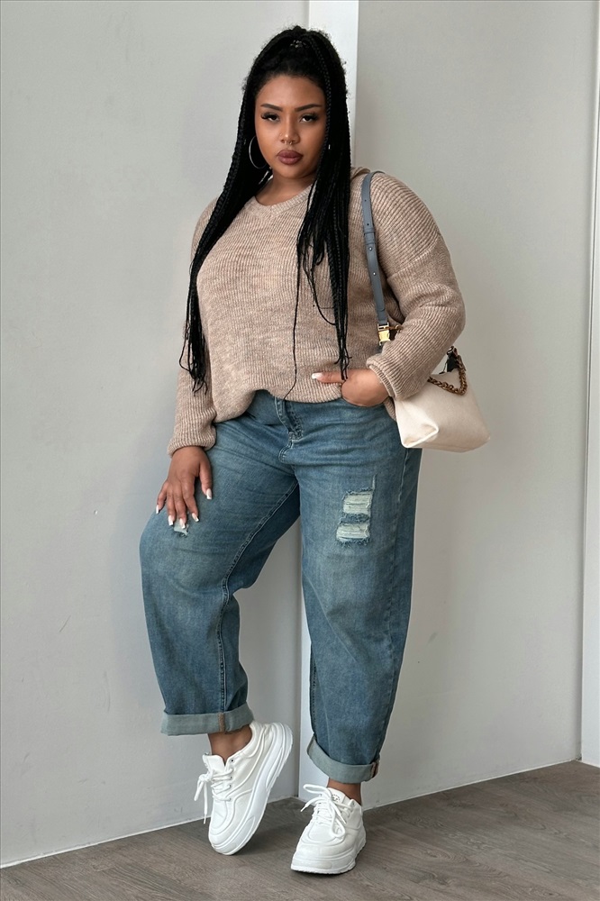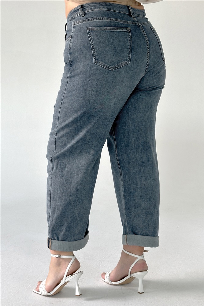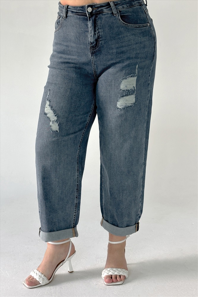 Элегантные брюки из мягкой джинсовой ткани с добавлением стрейча. Модель отлично сидит за счет притачного пояса и кокетки по спинке. Боковые карманы с отрезным бочком и задние накладные карманы добавляют модели практичности и функциональности. Модель с комфортной посадкой не сковывает движений. Слегка зауженные книзу брючины с отворотом визуально стройнят и зрительно вытягивают ноги. Модель застегивается спереди на пуговицу и скрытую молнию. Рванный эффект по переду брючин добавляют оригинальности. Комфортные джинсы - отличная база для создания разнообразных образов. Их могут смело носить как юные, спортивные барышни, так и изысканные дамы в возрасте. Правильно подобрав аксессуары, можно создавать смелые, утонченно женственные, строгие, деловые образы. (Во избежание окраски при первой носке, удалить с ткани новых джинсов излишки пигмента поможет легкая стирка с одним из закрепителей цвета (пищевой соды, уксуса, лимонной кислоты).